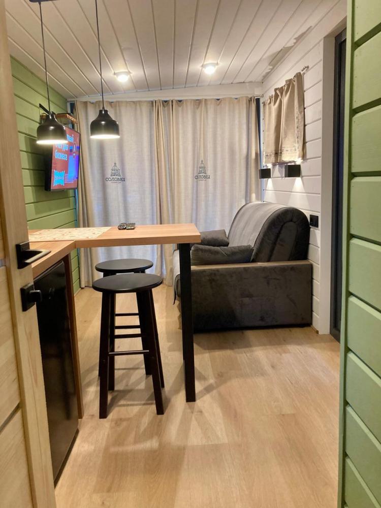Отдельный уютный дом Белое Море с террасой в центре поселка Соловецкий с одной двухспальной кроватью и одним двухспальным раздвижным диваном и прекрасным видом на Филипповскую часовню и бухту Благополучия, что создает атмосферу спокойствия и уединенного времени для путешественника. Терраса оборудована раздвижной безрамной системой остекления, печью-камином, столиком для приема пищи. В доме есть совмещенный санузел с душем, теплые полы. Зона гостиной и миникухня оснащены спутниковым ТВ, табуретами, раковиной, микроволновой печью, чайником, капсульной кофемашиной, посудой для приема пищи. Гостям предоставляется комплект полотенец для тела, лица, ног. Профессиональное постельное белье, удобные подушки и одеяла, матрасы обеспечат комфортный и крепкий сон. Дом подходит для размещения до 4-х человек. Звуки колокольного звона монастыря слышны на террасе, что создает неповторимую атмосферу, напоминая о традициях и духовной жизни острова. Наши постояльцы смогут восстановить гармонию между телом и духом. Вдали от городской суеты появится возможность уделить время себе, чтению книг, ведению дневника или просто наблюдению за природой. Здесь вы найдете вдохновение и силы для нового начала. Хороший крепкий сон на побережье Белого моря поможет расслабить тело и прекрасно отдохнуть.