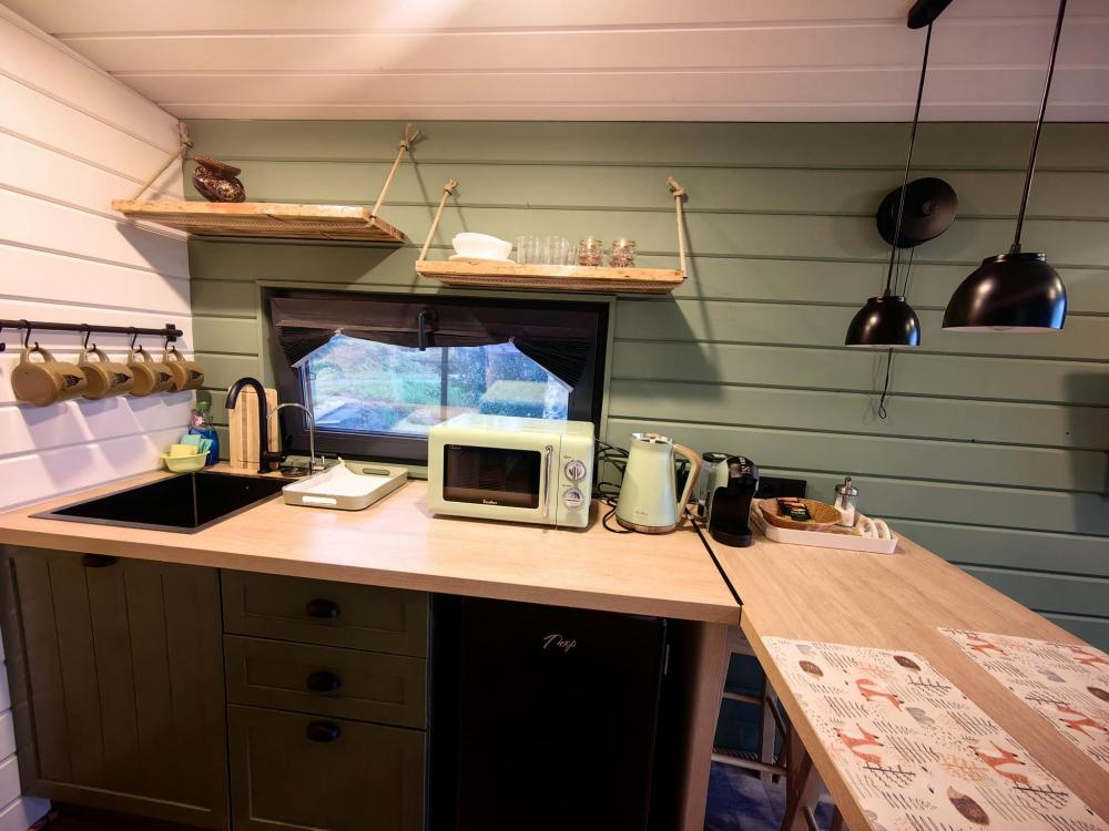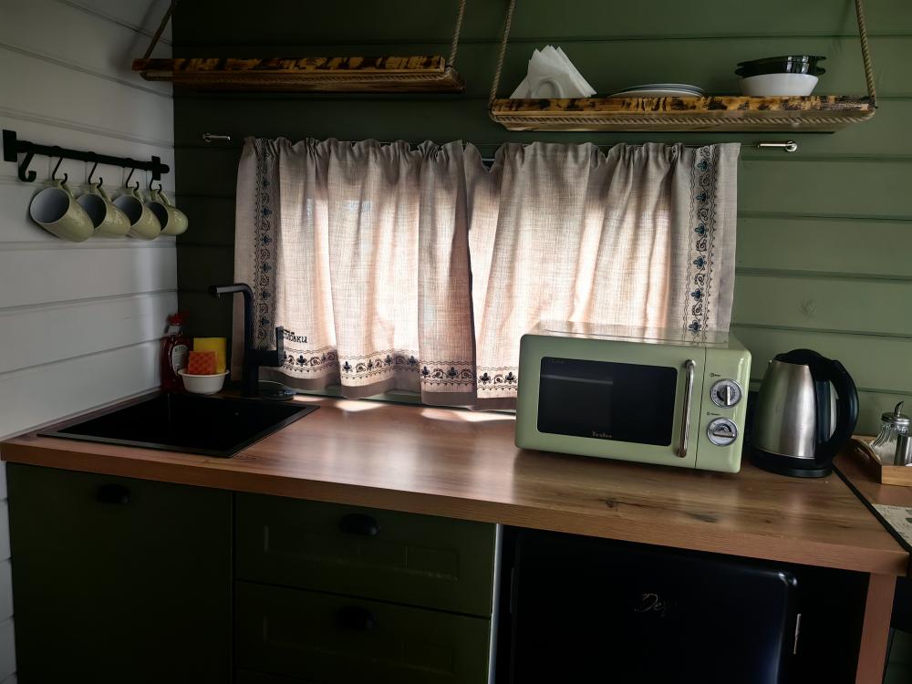 Уютный коттедж для 2-4 гостей, оборудованный всем необходимым для комфортного проживания. В коттедже двуспальная кровать, раскладной диван, мини-кухня, мини-веранда, санузел.