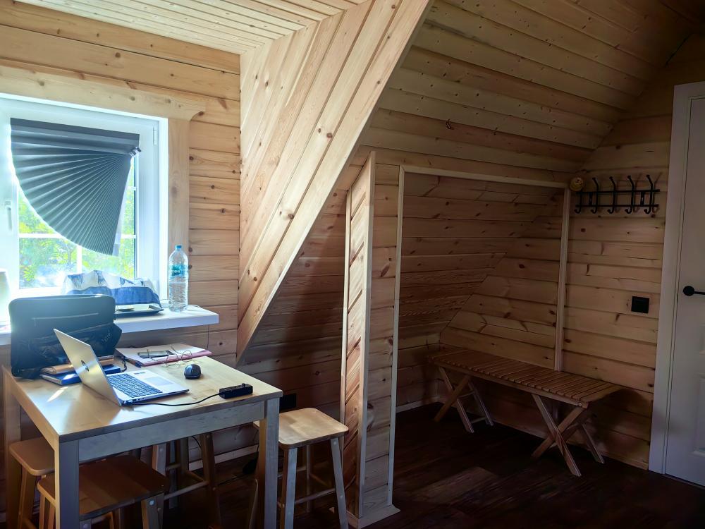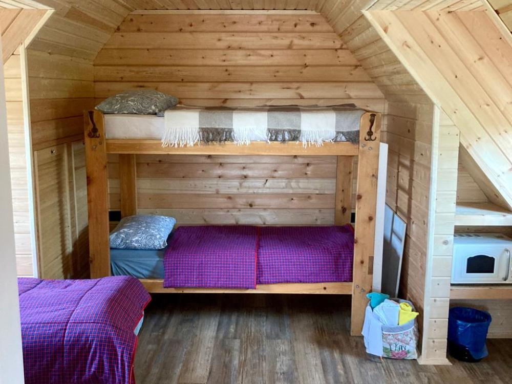 Уютный коттедж, рассчитанный на 6 гостей. В коттедже 2 двухъярусные кровати и 2 односпальные кровати, обеденный стол, стулья, собственный санузел с душем. Гостям предоставляется постельное белье.