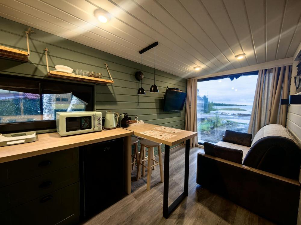 Уютный коттедж с видом на Белое море, предназначен для 2-4 гостей, оборудованный всем необходимым для комфортного проживания. В коттедже двуспальная кровать, раскладной диван, мини-кухня, мини-веранда, санузел.