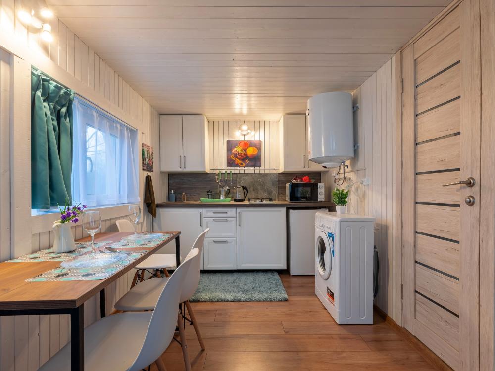 В доме есть всё необходимое: ✅ Двуспальная кровать, 2 шт. ✅ Раскладной диван ✅ Кухня со всем необходимым (холодильник, газовая плита, микроволновая печь, чайник, а так же посуда, приборы) ✅ Фен ✅ ТV , высокоскоростной Wi-Fi ✅ Стиральная машина ✅ Полотенца, принадлежности для душа ✅ Чай, кофе, сахар, конфеты, соль, масло