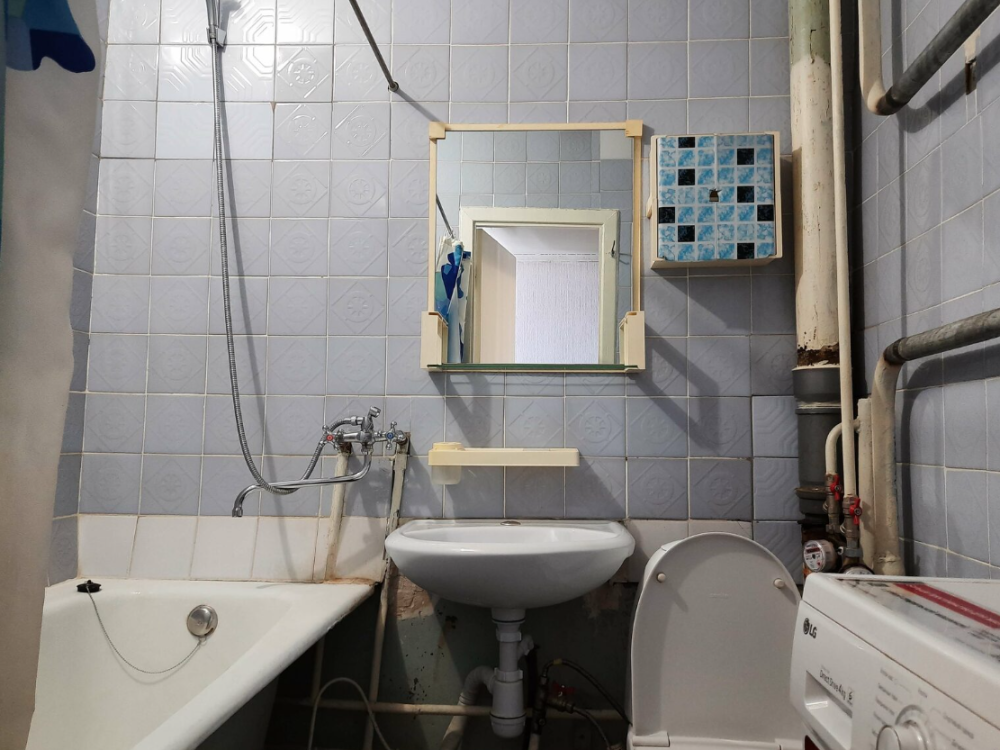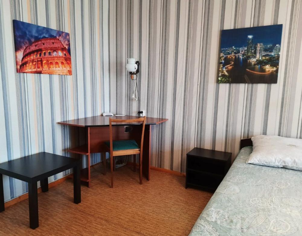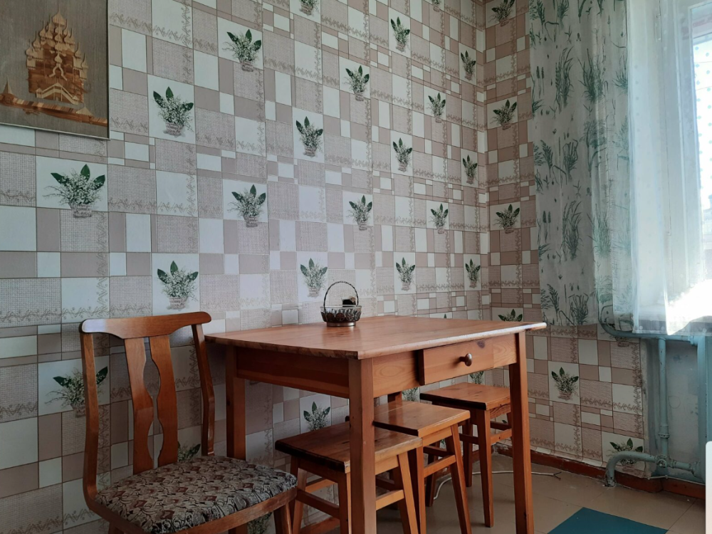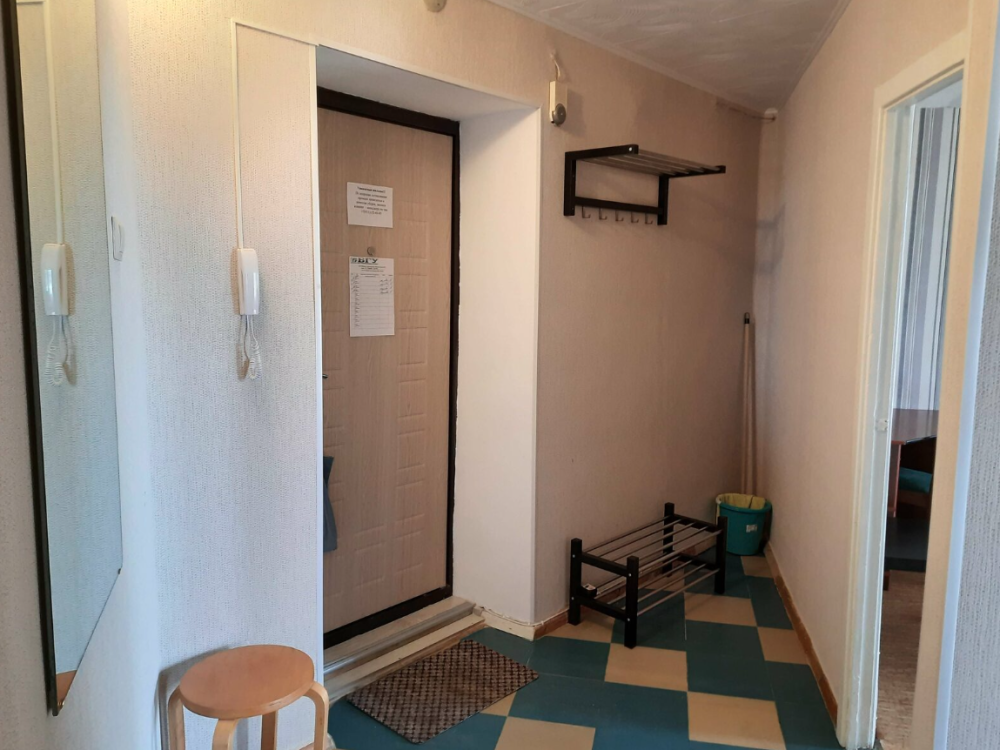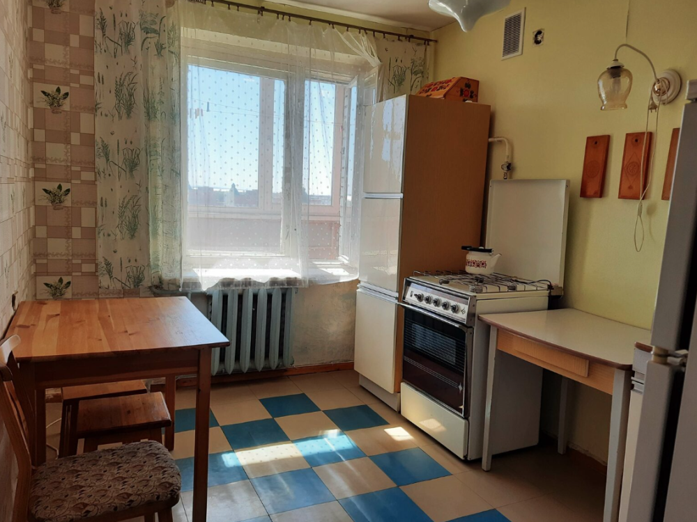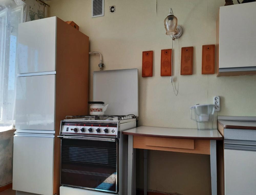 Однокомнатная квартира класса "Стандарт" в спальном районе города. Недалеко находятся автобусная остановка, продуктовые магазины, залив, детские площадки.