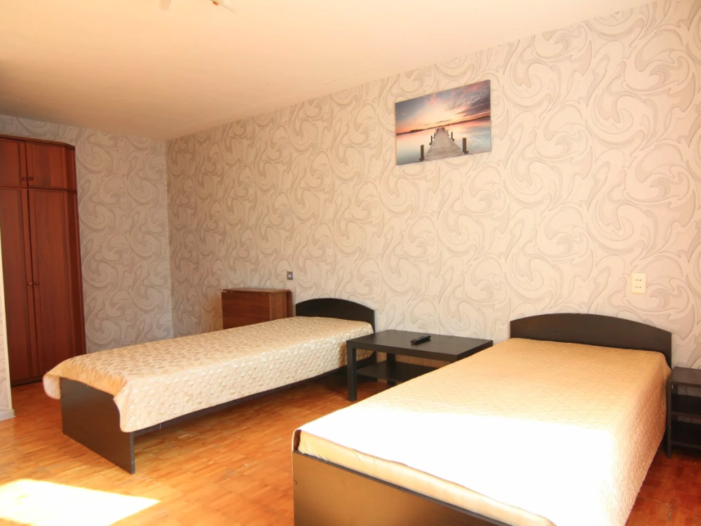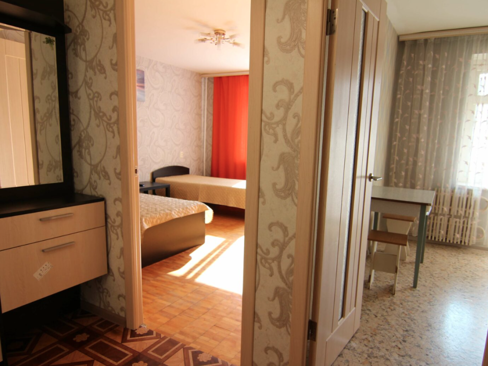 Однокомнатная квартира класса "Стандарт" в спальном районе города. Недалеко находятся продуктовые магазины, супермаркет "Пятёрочка", аптека, торговые центры "Планета" и "Москва", кафе, остановка общественного транспорта.