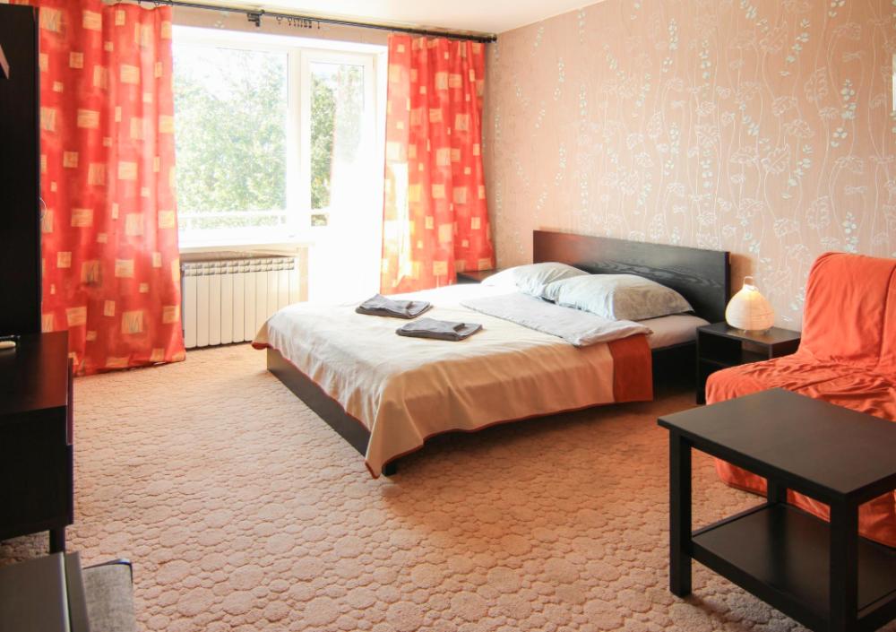 Однокомнатная квартира "Люкс" недалеко от центра города, уютный зелёный двор, в шаговой доступности продуктовые магазины, торговый центр "Таллин", кафе, остановка общественного транспорта, а также общественная баня и кинотеатр "Современник". За 5 минут можно дойти до сказочного комплекса "Андерсенград".