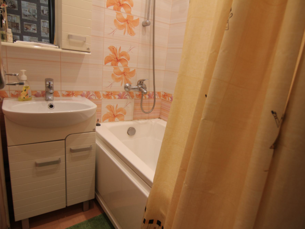 Однокомнатная квартира класса "Стандарт" в спальном районе города. Недалеко находятся автобусная остановка, река Коваш, продуктовые магазины, залив.