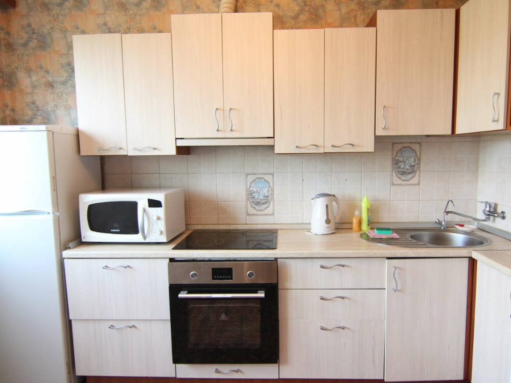 В квартире имеется все необходимое для комфортного проживания, включая кухонную посуду,постельное белье и полотенца. В обязательный набор каждой квартиры входит: мягкая и корпусная мебель, телевизор, холодильник, электрический чайник. При проживании от семи суток, мы проводим плановую уборку со сменой постельного белья, полотенец.