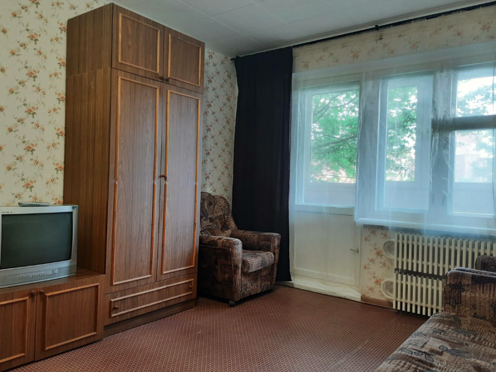 Трехкомнатная квартира класса "Стандарт" в тихом зеленом районе города. Недалеко находятся продуктовые магазины, спортивные и детские площадки.