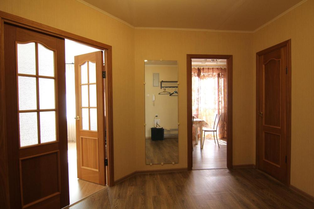 Однокомнатная квартира "Люкс" в зеленом районе города. В шаговой доступности находятся магазины, гипермаркет "Перекресток", ТЦ "Крым" и "Арбат", кафе и пиццерия, фитнес-центр, остановки общественного транспорта, во дворе - детские площадки.