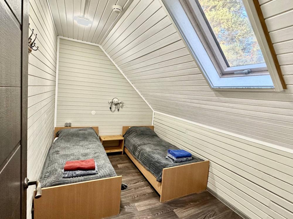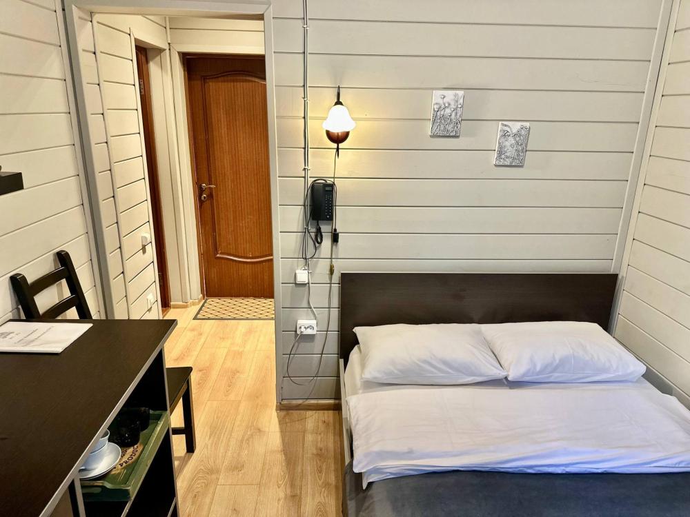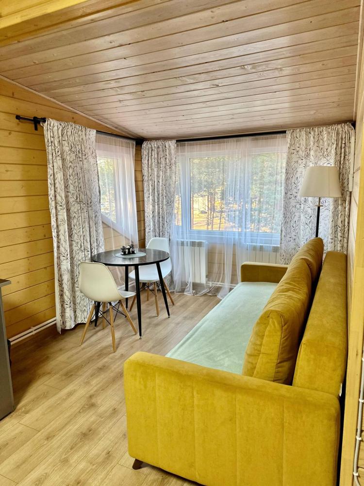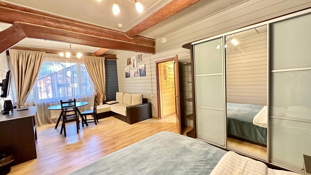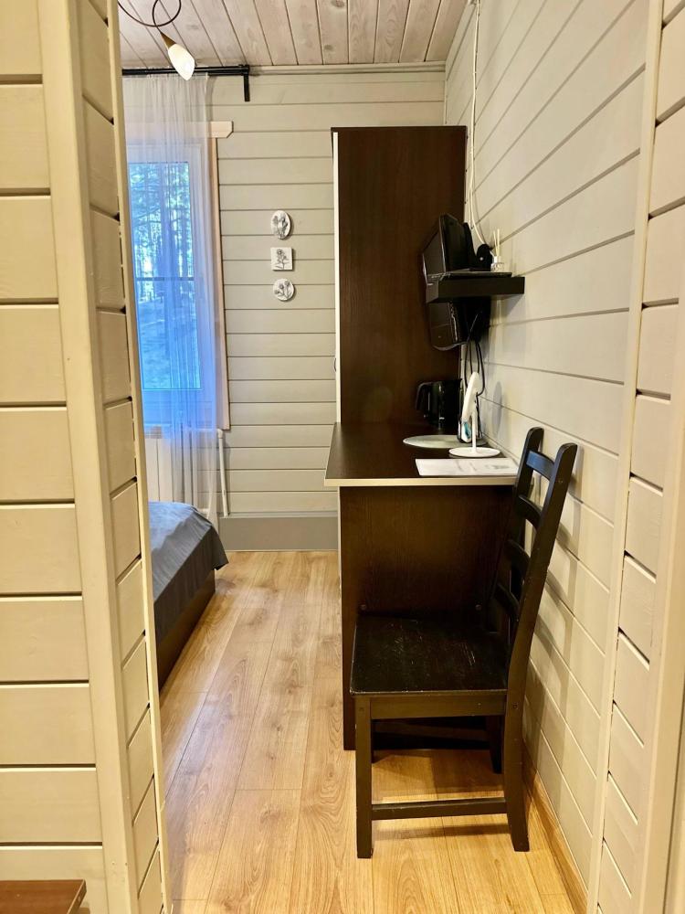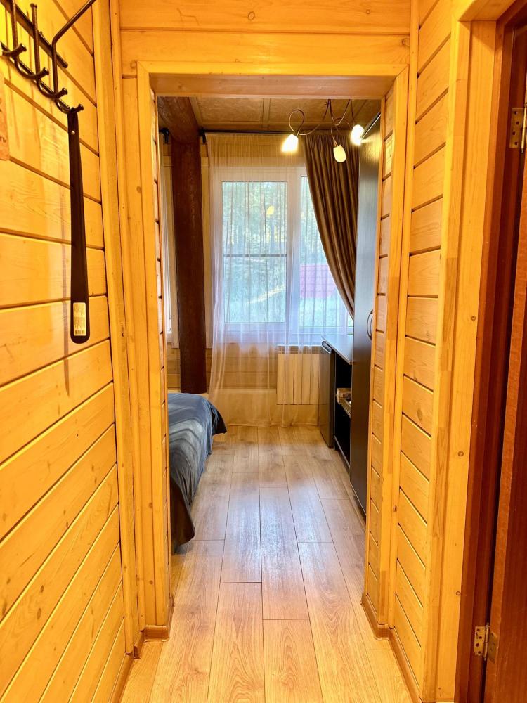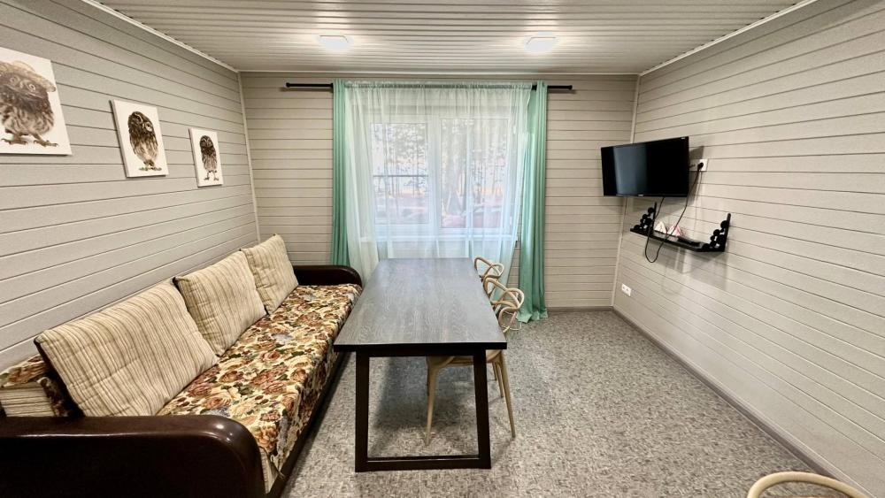 Компактный однокомнатный номер на 1-м этаже отеля с возможностью размещения одного или двух гостей. Это наш самый маленький номер, 11 м2. Номер имеет всё необходимое для комфортного проживания. Оснащение номера: 2-х спальная кровать 140*200; Телевизор; Холодильник; Электрический чайник и посуда; Фен; Собственный санузел в номере, душ с холодной и горячей водой. Вид из окон на лес. Мы предоставляем постельное бельё и полотенца. Обращаем внимание, что размещение с животными в этом номере - ЗАПРЕЩЕНО!
