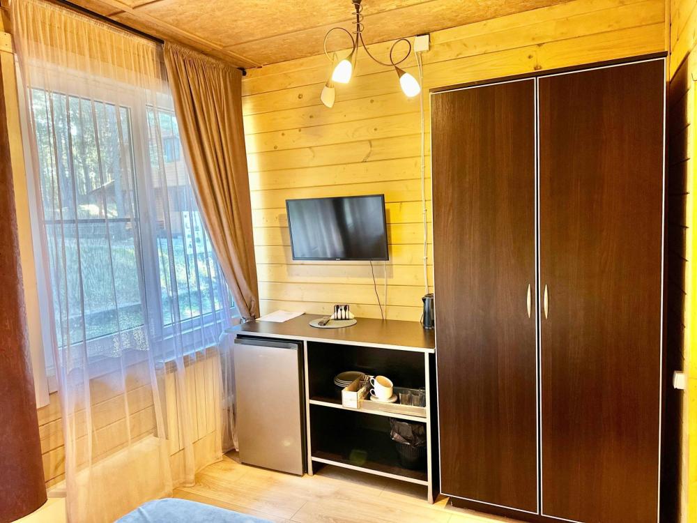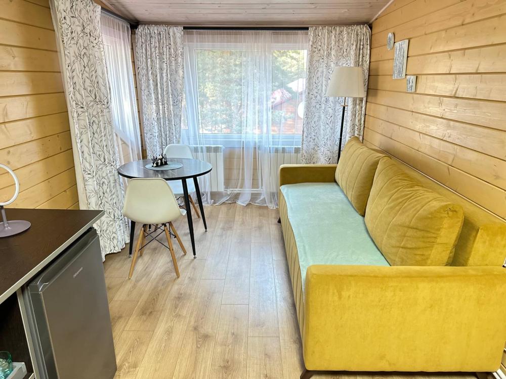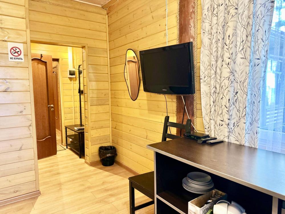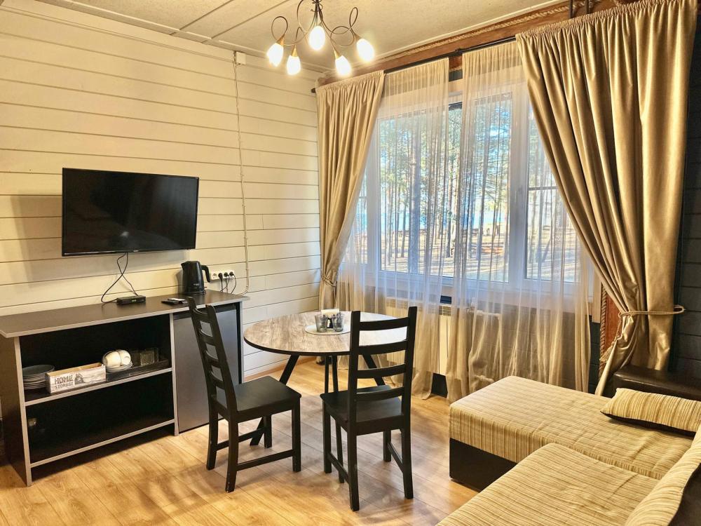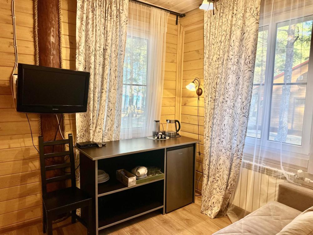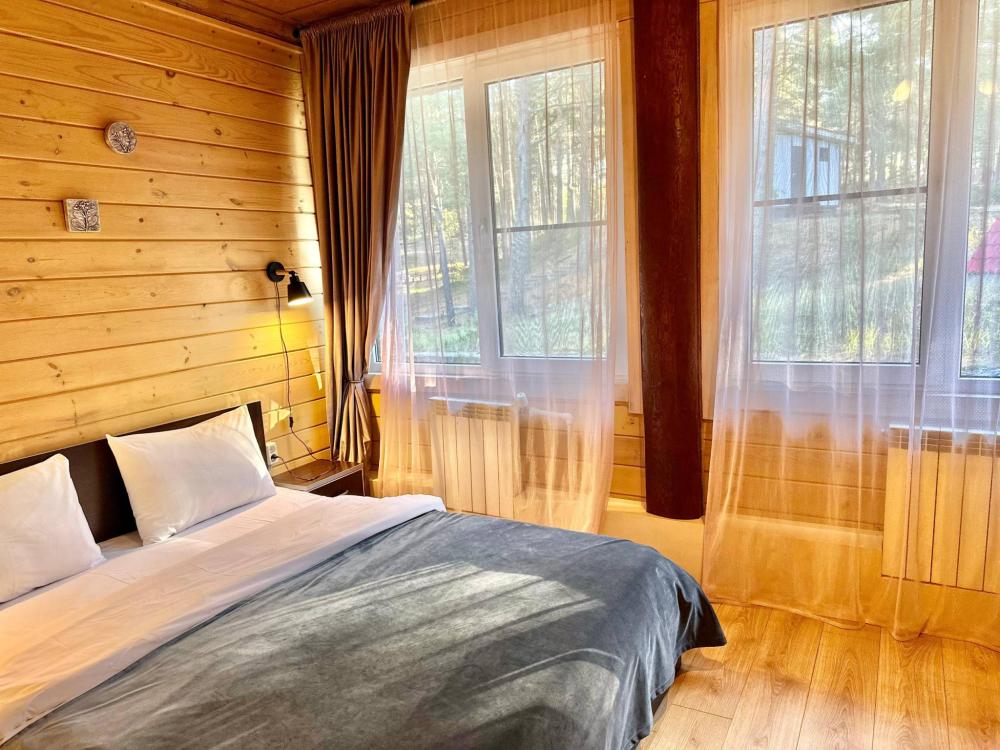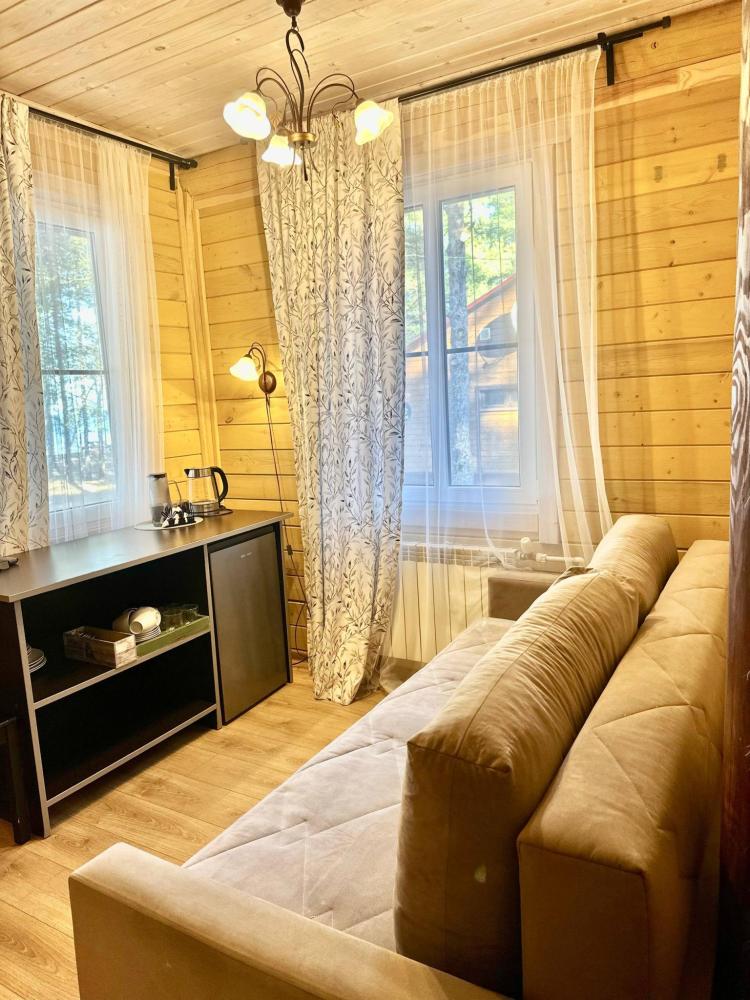 Компактный однокомнатный номер на 1-м этаже отеля с возможностью размещения одного или двух гостей. Это наш самый маленький номер, 11 м2. Номер имеет всё необходимое для комфортного проживания. Оснащение номера: 2-х спальная кровать 140*200; Телевизор; Холодильник; Электрический чайник и посуда; Фен; Собственный санузел в номере, душ с холодной и горячей водой. Вид из окон на лес. Мы предоставляем постельное бельё и полотенца. Обращаем внимание, что размещение с животными в этом номере - ЗАПРЕЩЕНО!