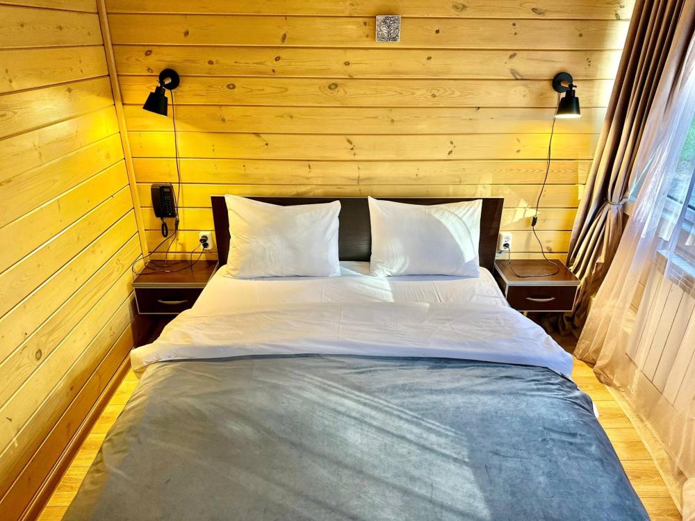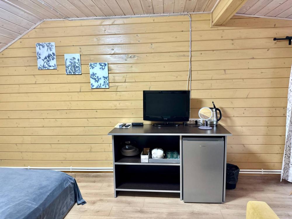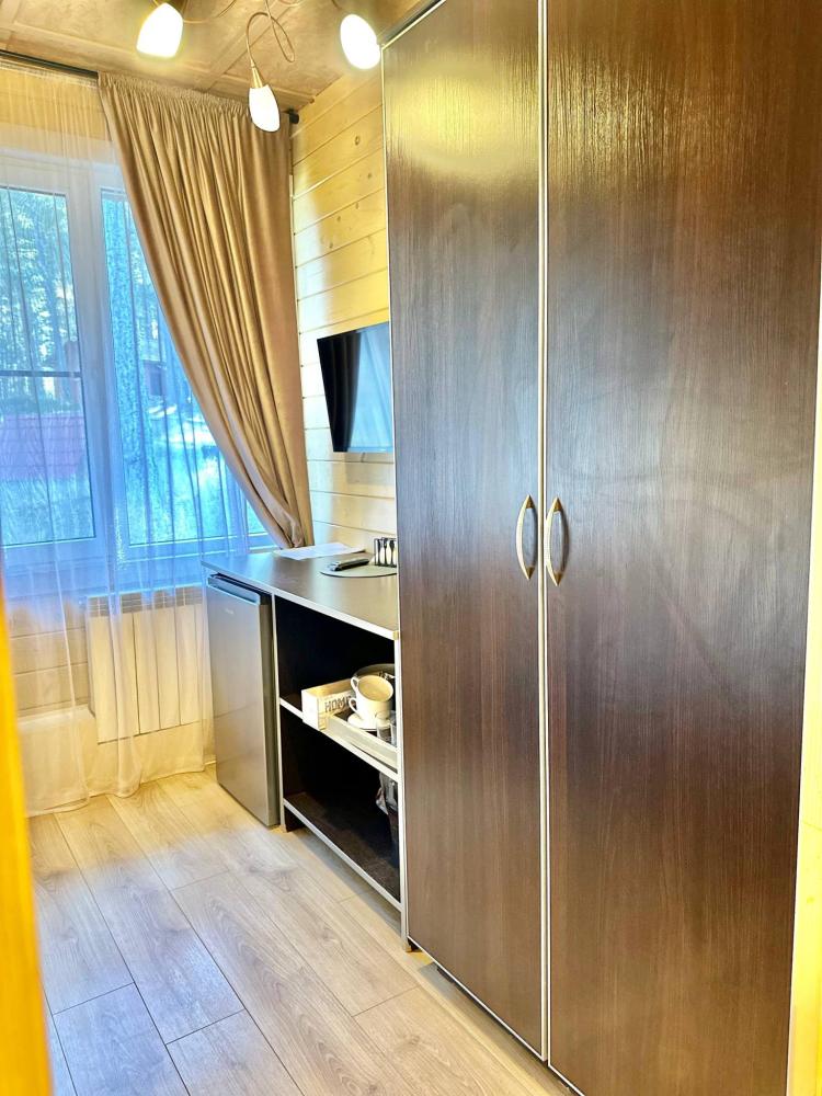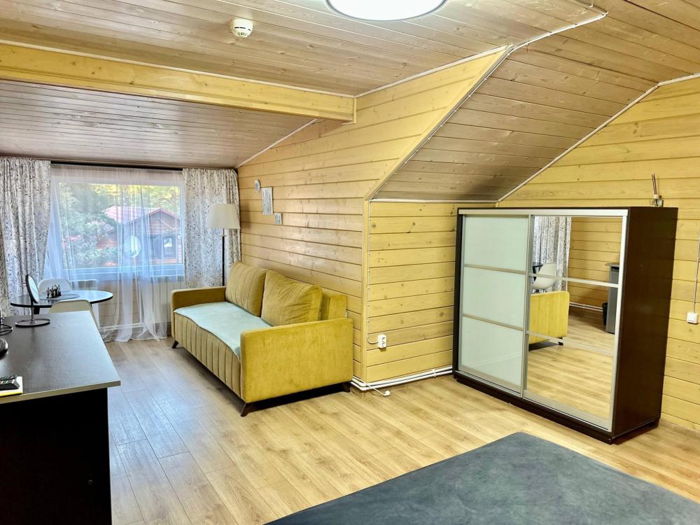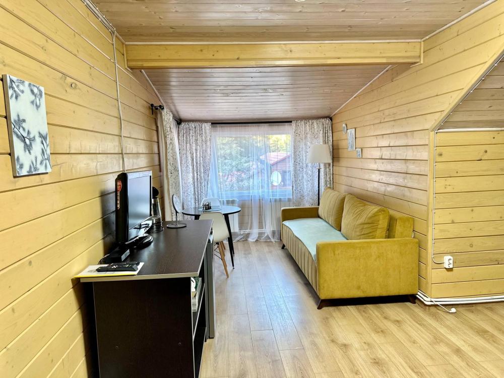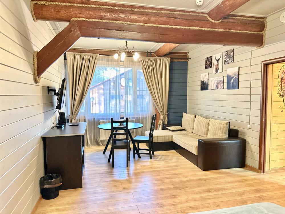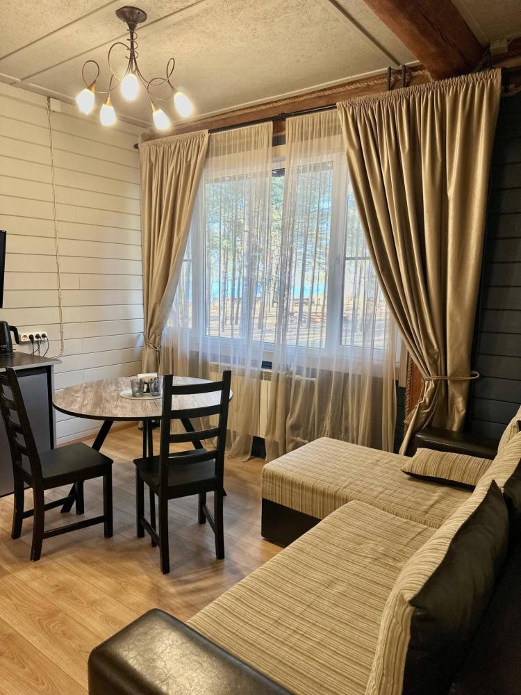 Компактный однокомнатный номер на 1-м этаже отеля с возможностью размещения одного или двух гостей. Это наш самый маленький номер, 11 м2. Номер имеет всё необходимое для комфортного проживания. Оснащение номера: 2-х спальная кровать 140*200; Телевизор; Холодильник; Электрический чайник и посуда; Фен; Собственный санузел в номере, душ с холодной и горячей водой. Вид из окон на лес. Мы предоставляем постельное бельё и полотенца. Обращаем внимание, что размещение с животными в этом номере - ЗАПРЕЩЕНО!