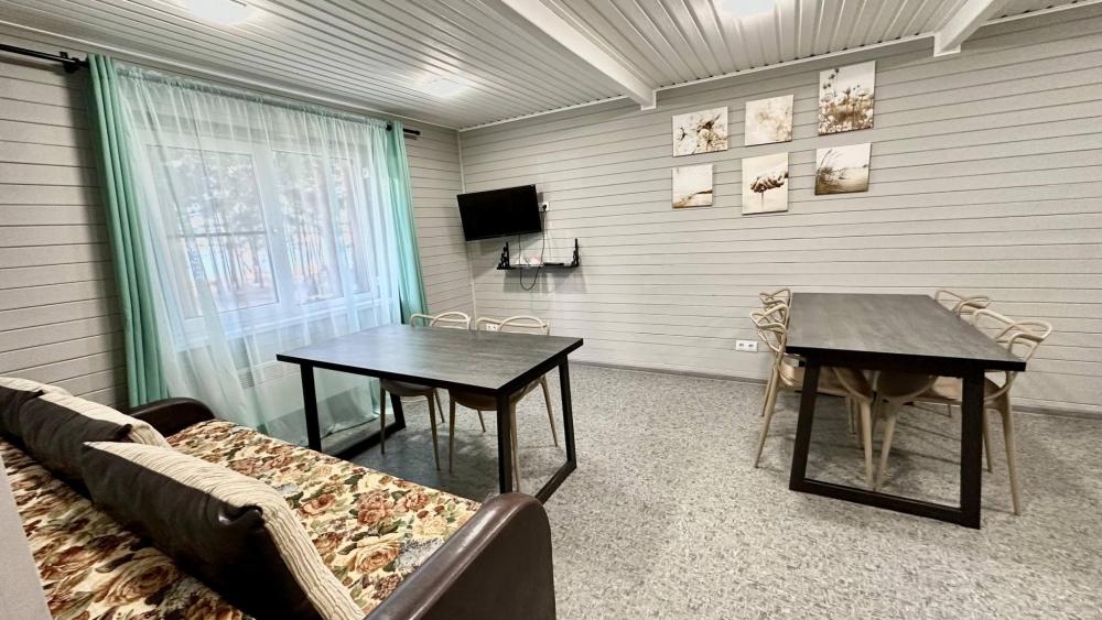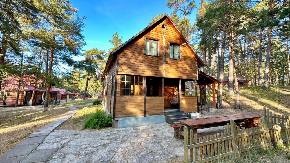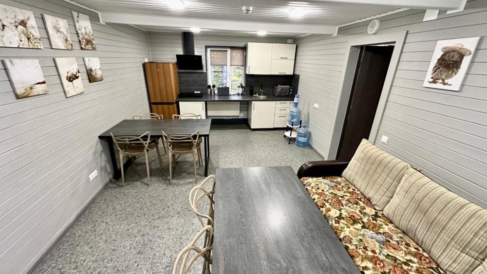 Заезд с 14:00 Выезд до 12:00 Одноэтажный, рубленый коттедж на 6 гостей состоит их трех комнат. (с возможностью размещения 2х доп. гостей, оплачиваются дополнительно) Здесь есть все необходимые условия для комфортного отдыха. Оснащение коттеджа: Общая зона, где находятся три обеденных стола, шесть лавочек. Кухня оснащена холодильником, микроволновой печью, чайником, посудой на 8 персон, ТВ. Санузел и душ внутри коттеджа. Две изолированные спальни с двуспальными и односпальными кроватями. Коттедж рассчитан до 8 спальных мест. При этом есть возможность дополнительно пригласить гостей дневного пребывания. Мы предоставляем постельное бельё и полотенца.