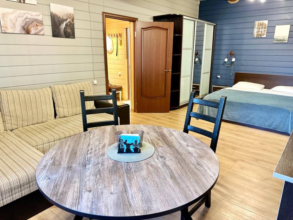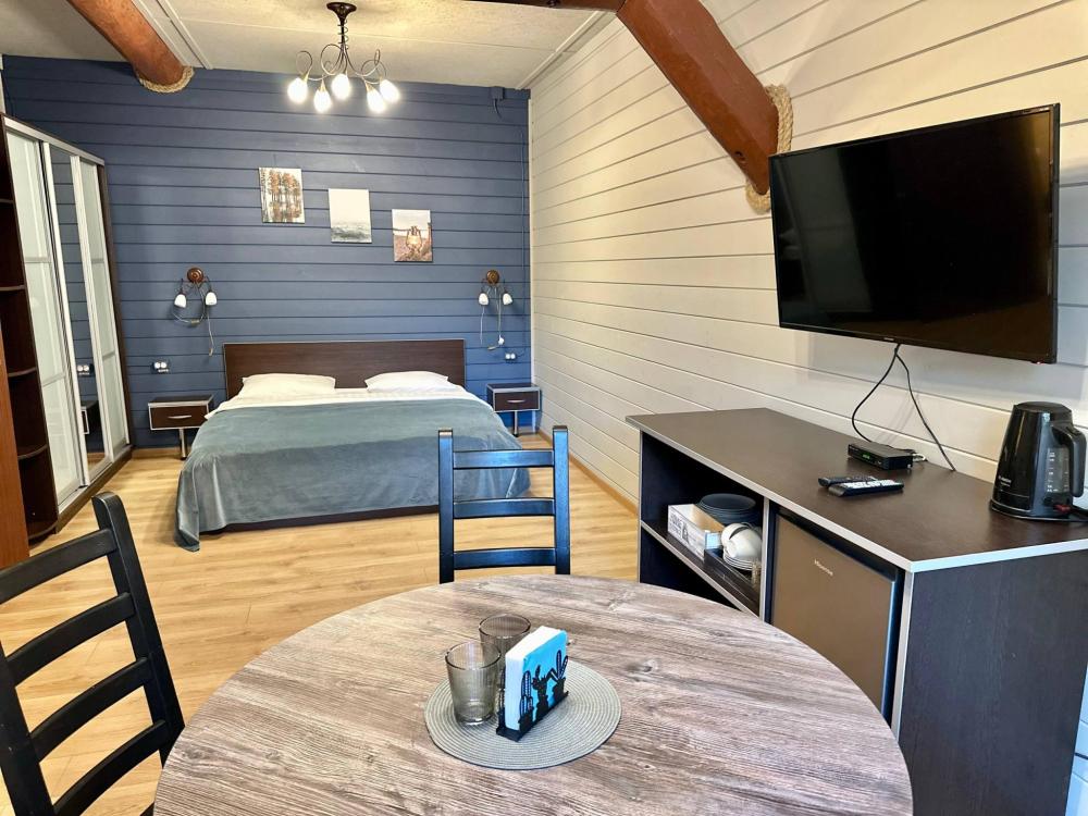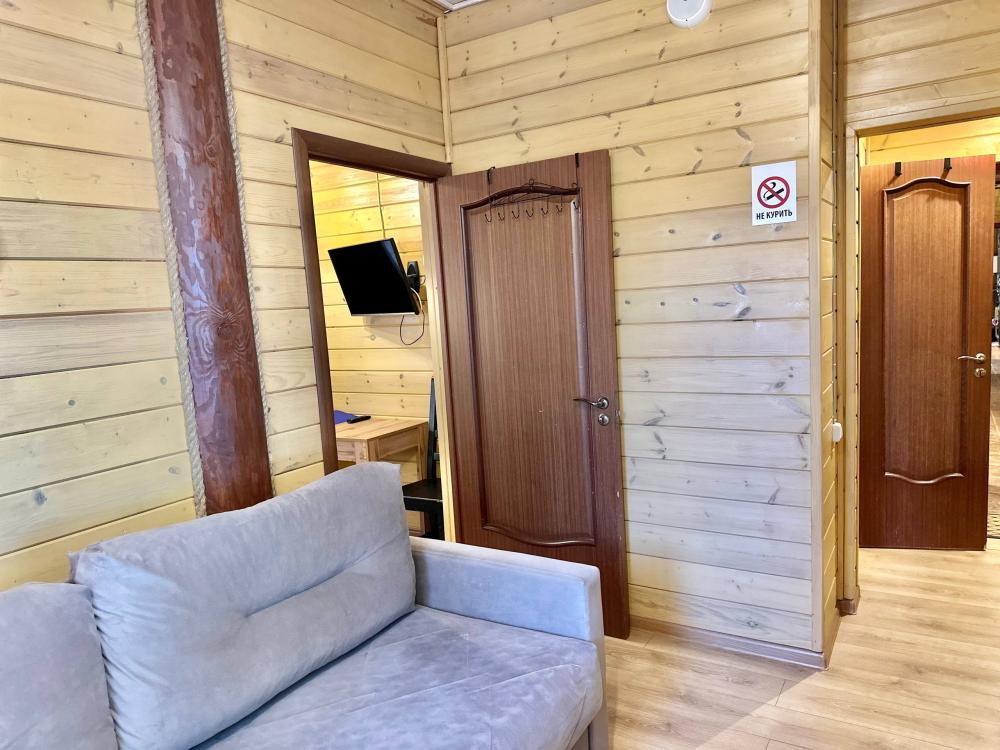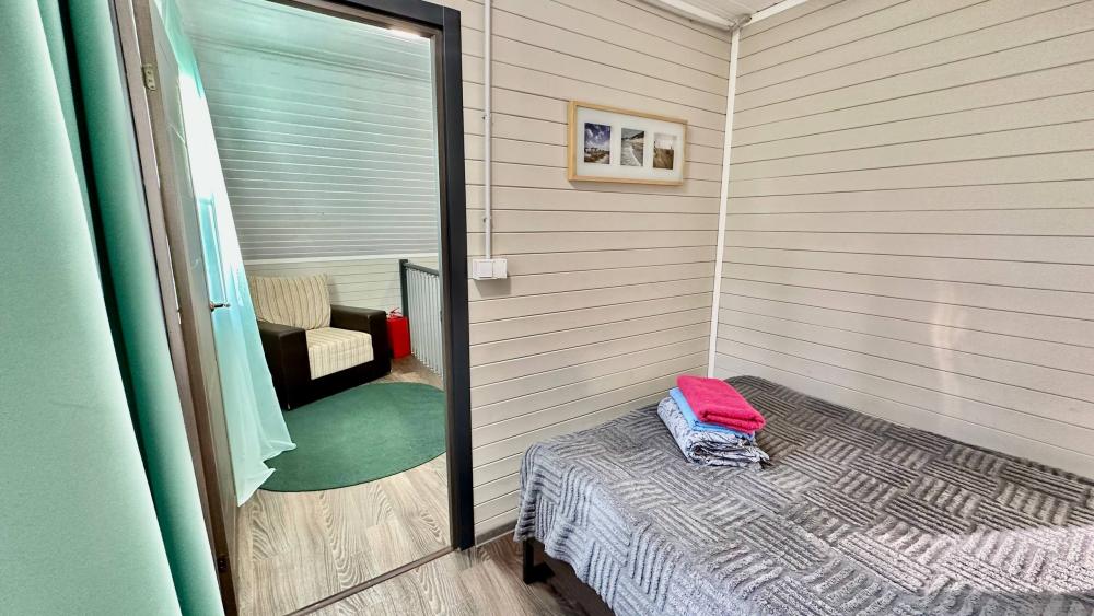 Уютный однокомнатный номер на 1м этаже гостиницы. Рассчитан на двух гостей (с возможностью размещения 2х доп. гостей, оплачиваются дополнительно) Подойдёт для размещения семьи или небольшой компании друзей. Номер имеет всё необходимое для комфортного проживания. Оснащение номера: 2-х спальная кровать с прикроватными тумбочками; Двуспальный раскладной диван; Телевизор; Холодильник; Электрический чайник и посуда; Фен; Собственный санузел в номере, душ с холодной и горячей водой. Вид из окна на залив. Мы предоставляем постельное бельё и полотенца.