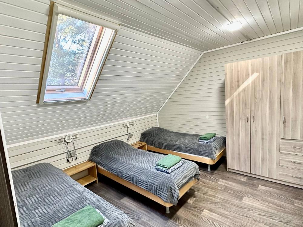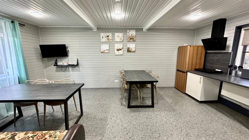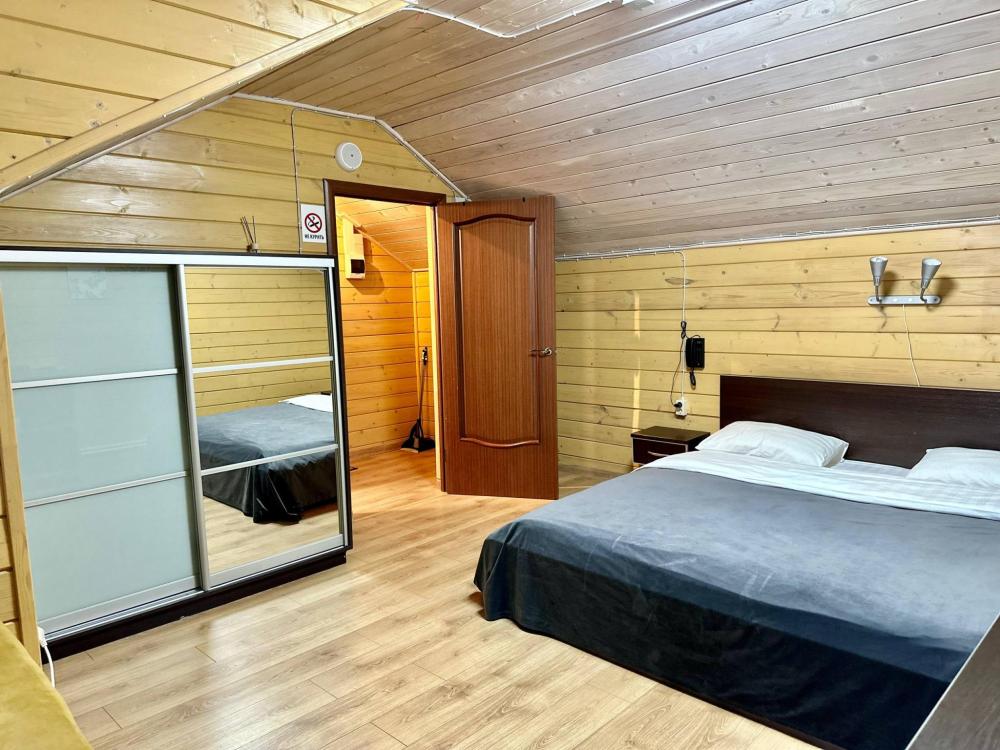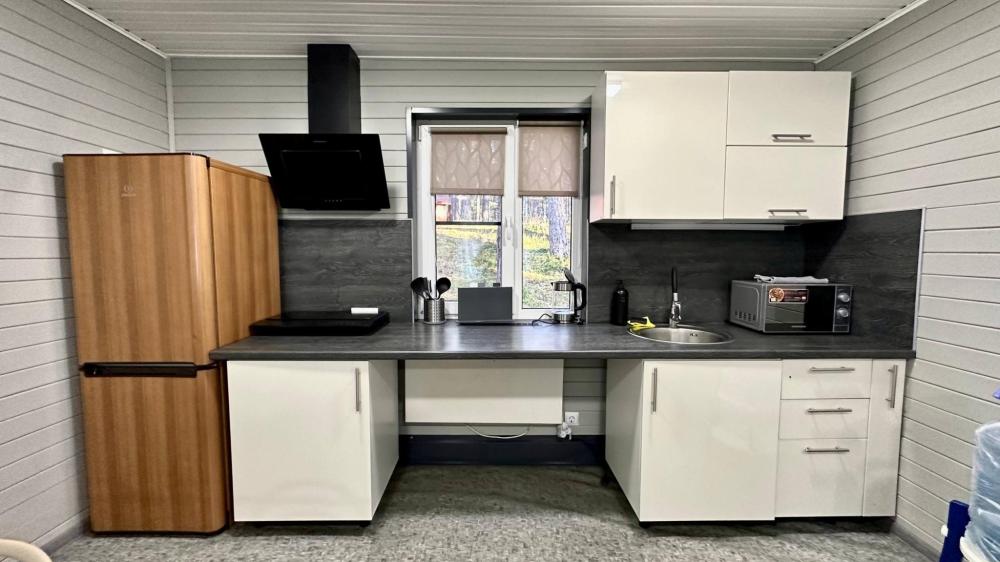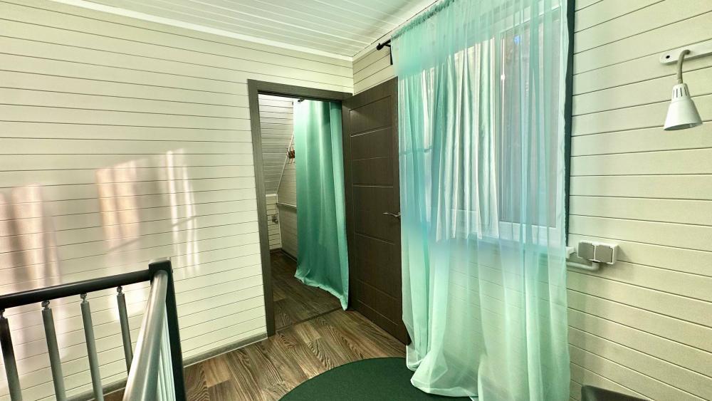 Заезд с 16:00 Выезд до 14:00 Двухэтажный деревянный коттедж, рассчитанный на размещение 7 гостей, (с возможностью размещения 2х доп. гостей, оплачиваются дополнительно) На первом этаже расположена оборудованная кухня-гостиная. Зона кухни: большой холодильник, индукционная панель на 2 конфорки, микроволновая печь, электрический чайник, посуда и столовые приборы, мойка напротив окна. Зона гостиной: мягкий диван, обеденный стол с удобными стульями, телевизор. Также на 1м этаже находятся санузел и душевая. На втором этаже расположены 3 изолированные спальни. Спальня с двуспальной кроватью и тумбочкой. Спальня с двумя односпальными кроватями и тумбочкой. Спальня с тремя односпальными кроватями, тумбочками и шкафом. Мы предоставляем постельное бельё и полотенца на заявленное кол-во гостей. А также средства для душа, мыло, туалетную бумагу, средства для кухни.