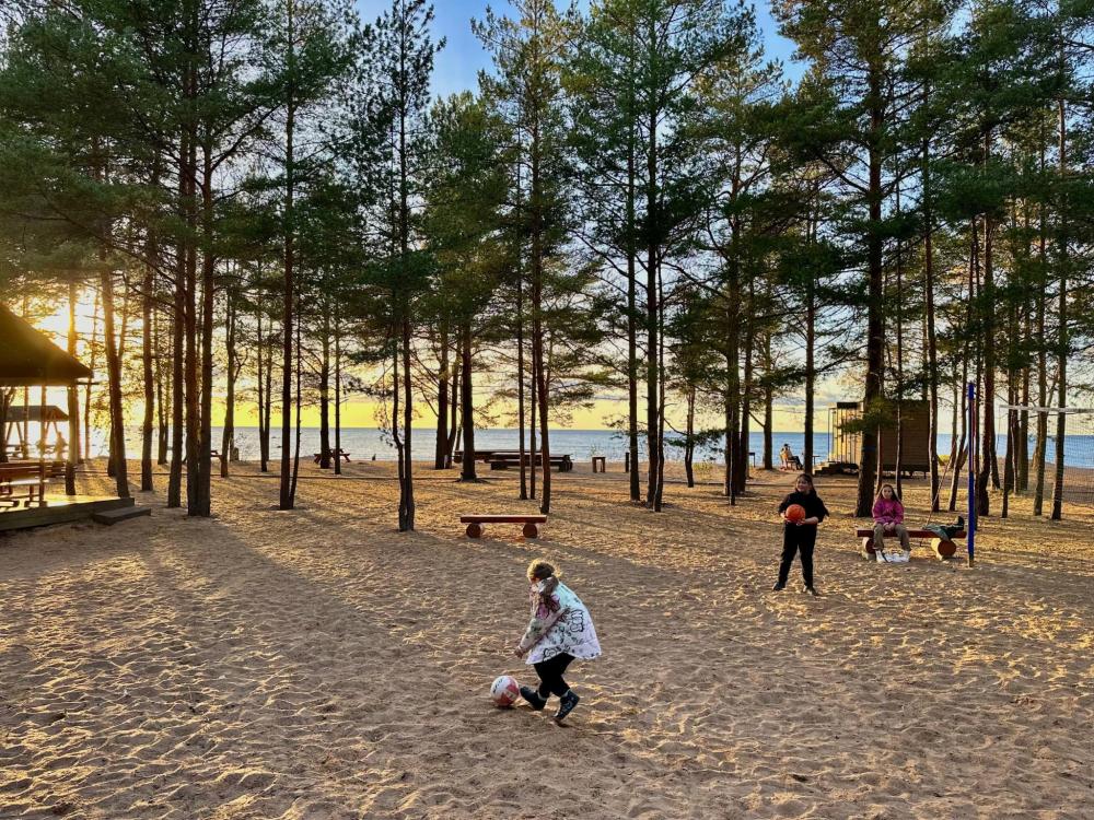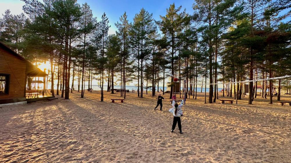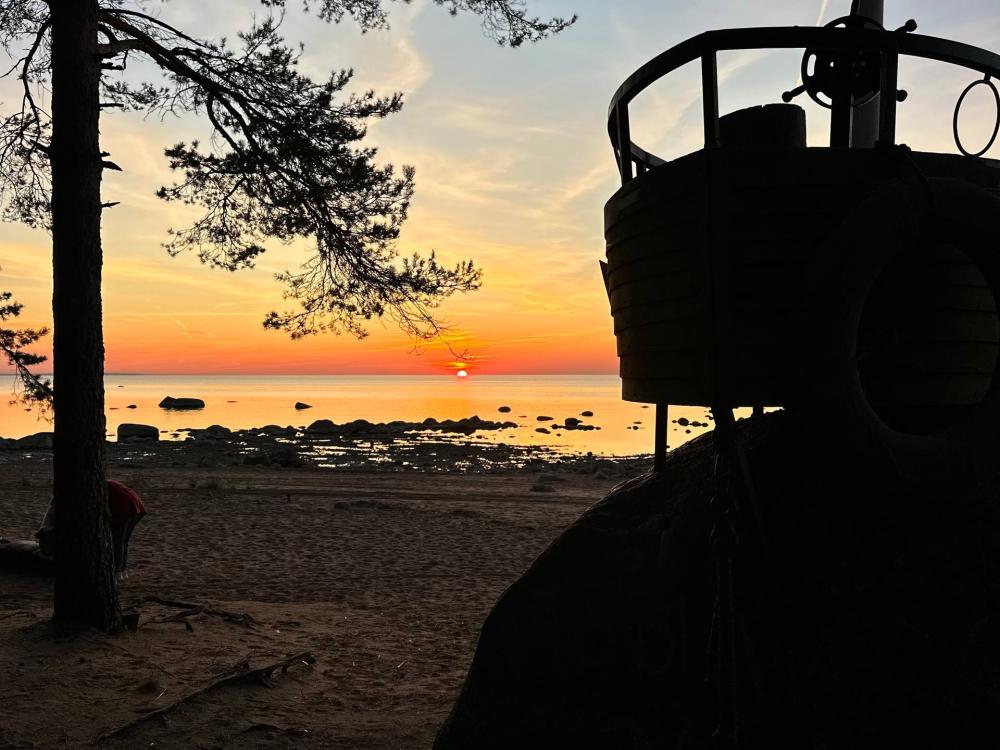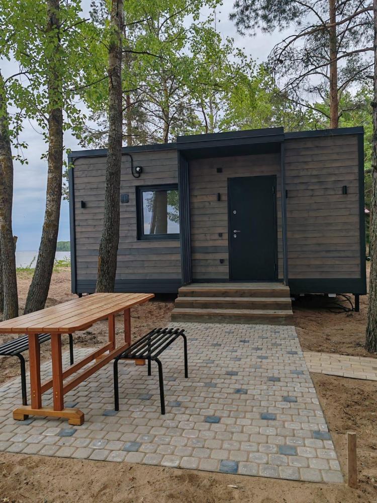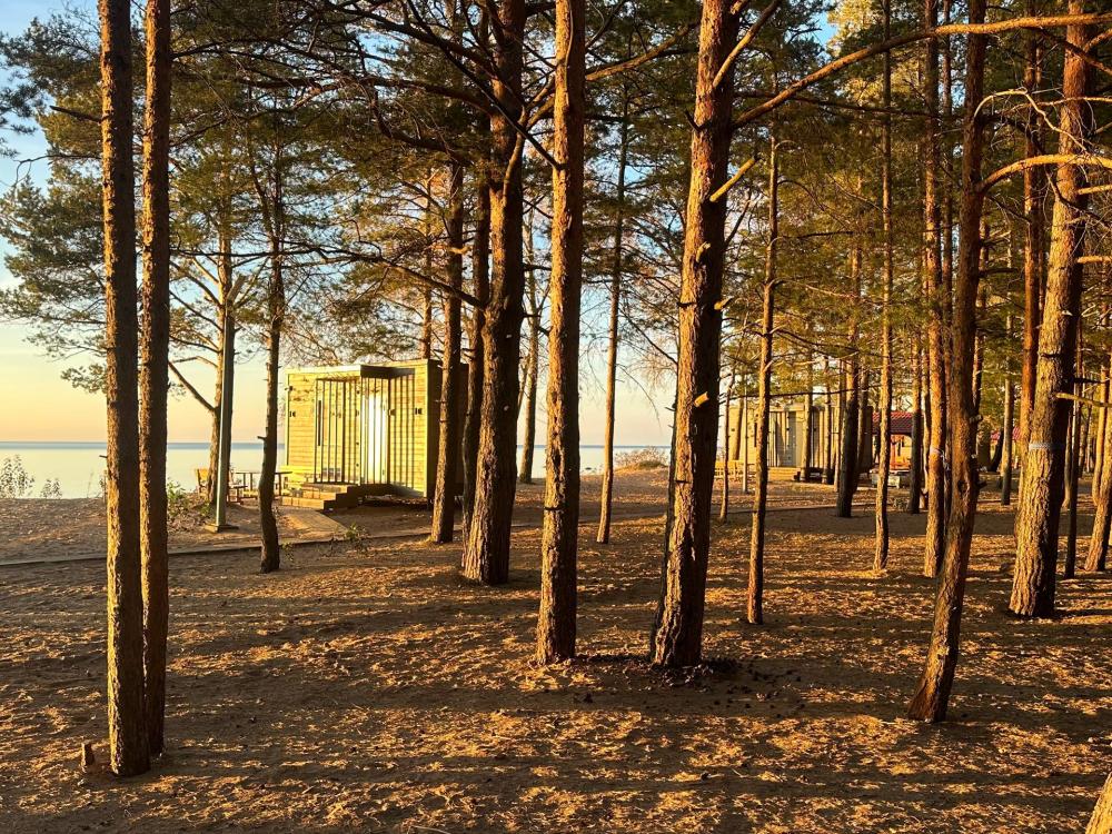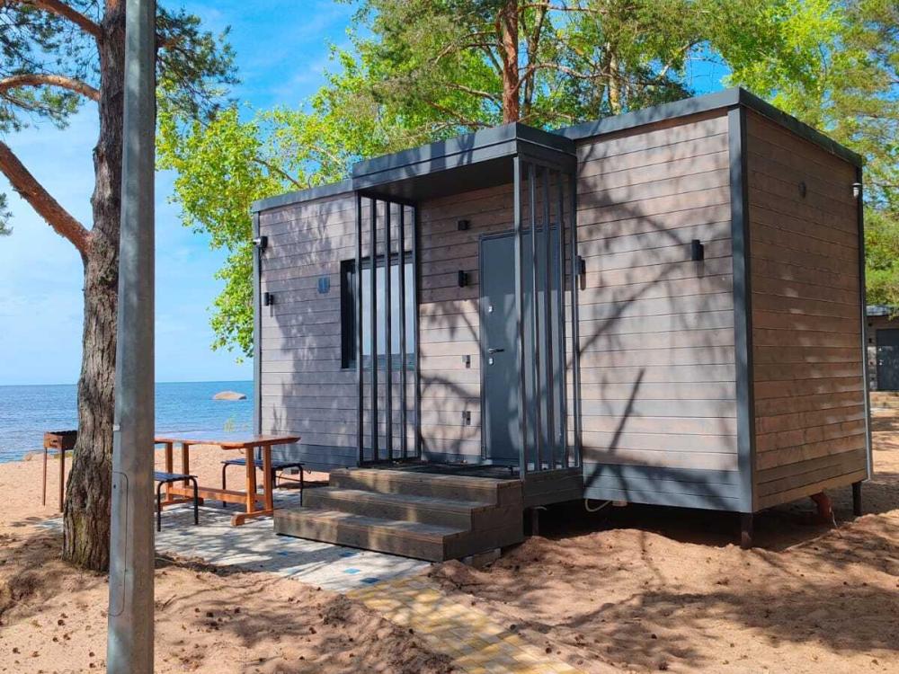 Уютный коттедж "Закат" для двоих на первой береговой линии Финского залива. Панорамное окно с видом на залив, двухспальный диван, кухонная зона с плитой, микроволновой плитой, чайником, холодильником и посудой. Отдельный санузел, душевая кабина. Возле коттеджа оборудованная мангальная зона со столом и скамьями.
