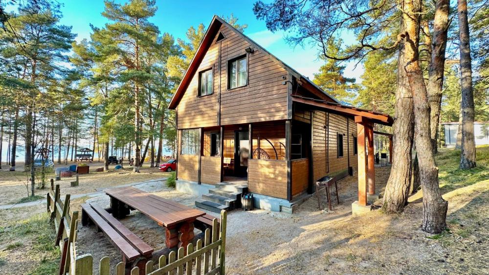 Уютный коттедж "Рассвет" для двоих на первой береговой линии Финского залива. Панорамное окно с видом на залив, двуспальный диван, кухонная зона с плитой, микроволновой плитой, чайником, холодильником и посудой. Отдельный санузел, душевая кабина. Возле коттеджа оборудованная мангальная зона со столом и скамьями.
