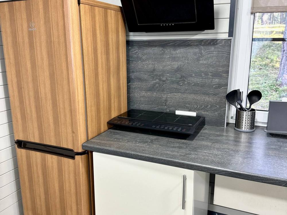 Двухместная беседка с панорамным окном и видом на северное сияние. Кухонная и спальная зоны, санузел с душевой. 2 спальных места. Зона для барбекю с мангалом, терраса со столом и скамьями.
