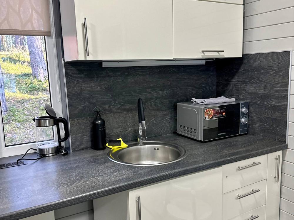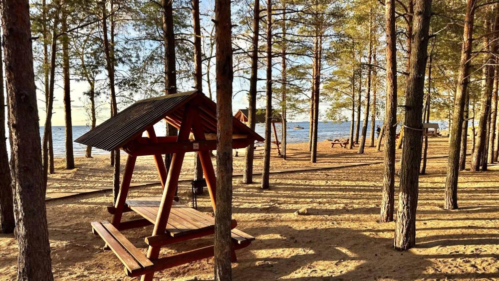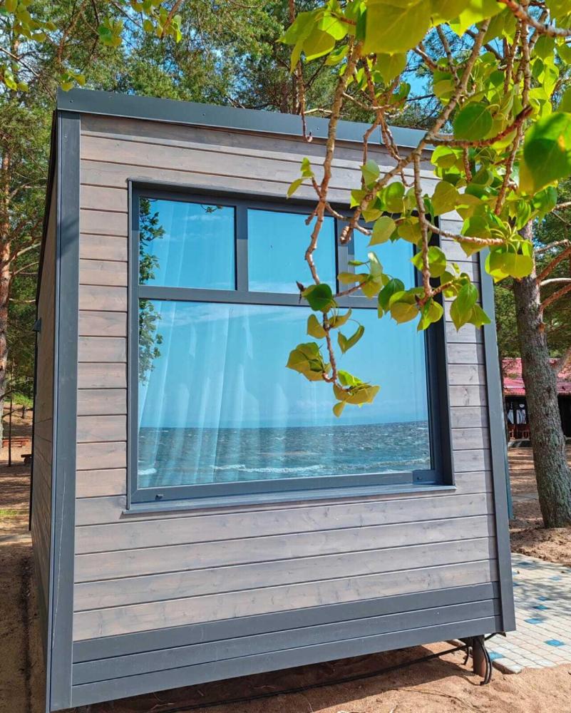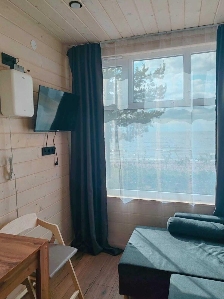 Уютный коттедж "Сияние" для двоих на первой береговой линии Финского залива. Панорамное окно с видом на залив, двуспальный диван, кухонная зона с плитой, микроволновой плитой, чайником, холодильником и посудой. Отдельный санузел, душевая кабина. Возле коттеджа оборудованная мангальная зона со столом и скамьями.