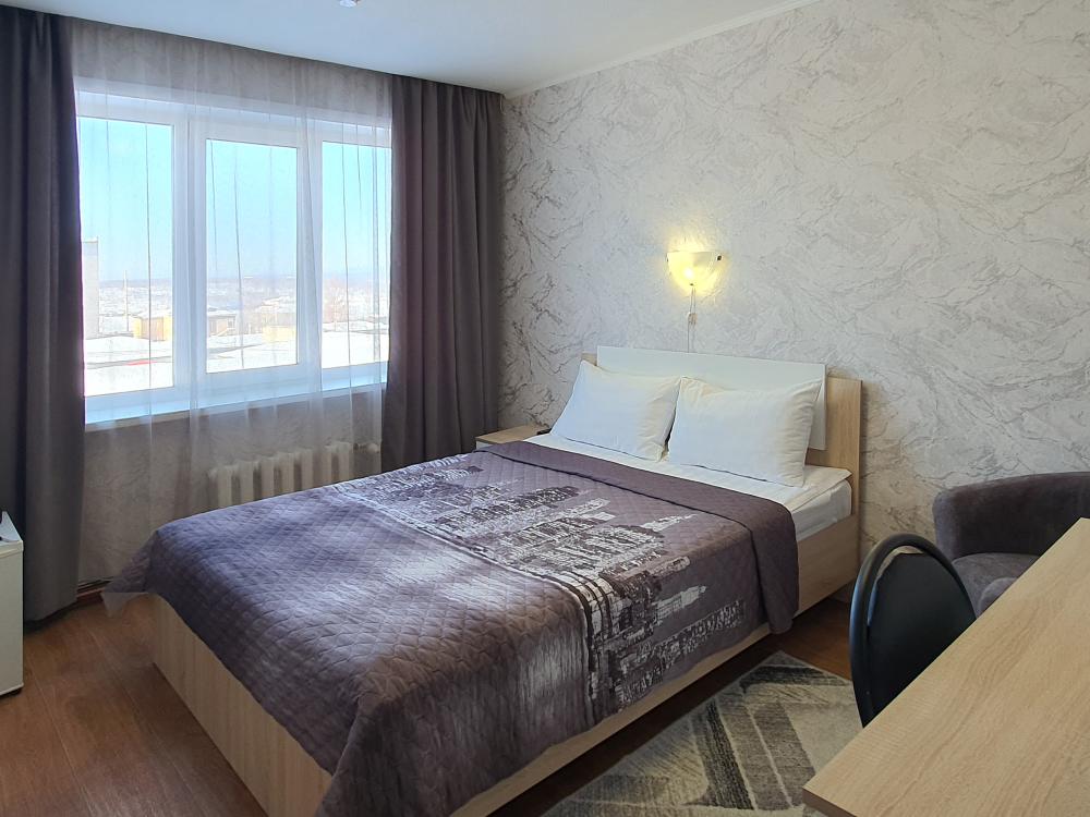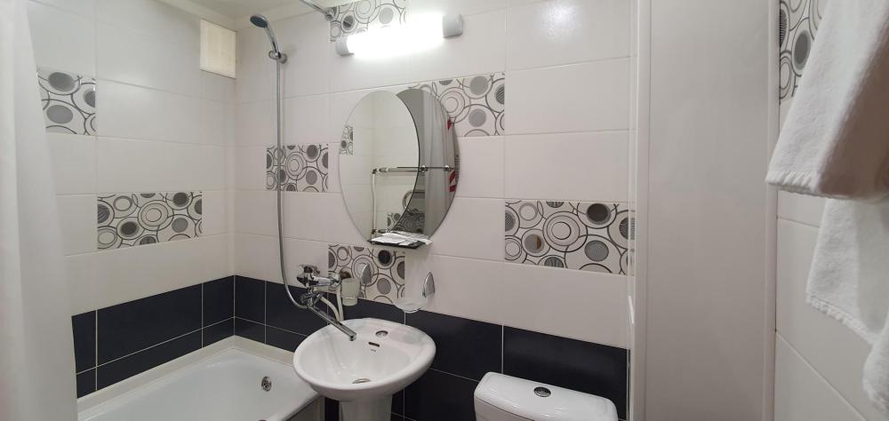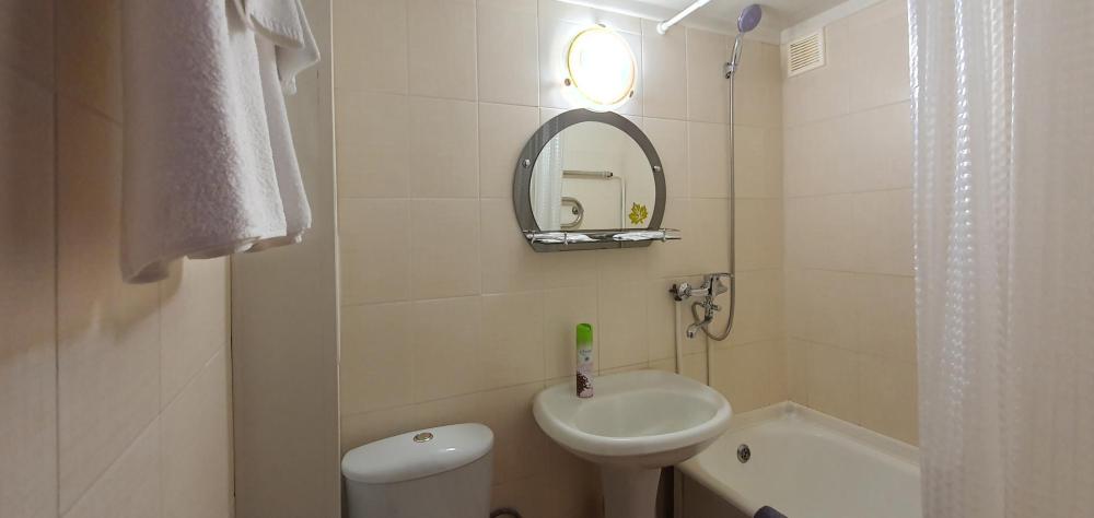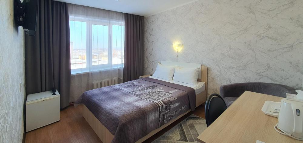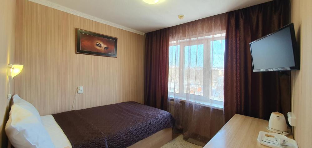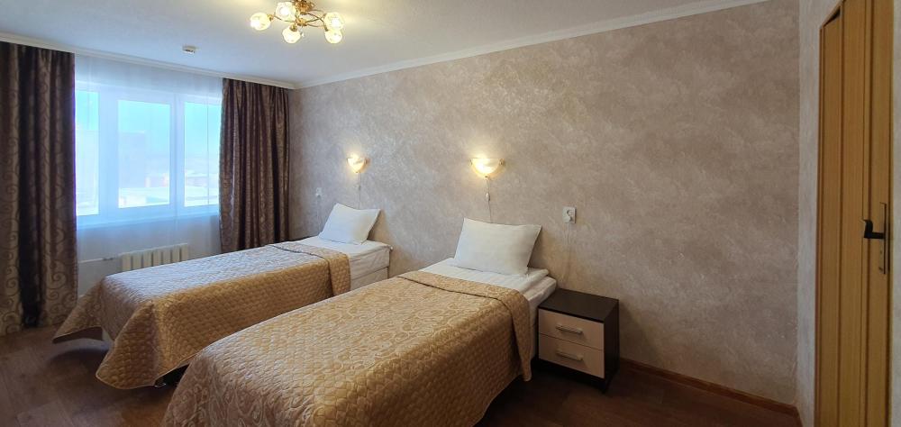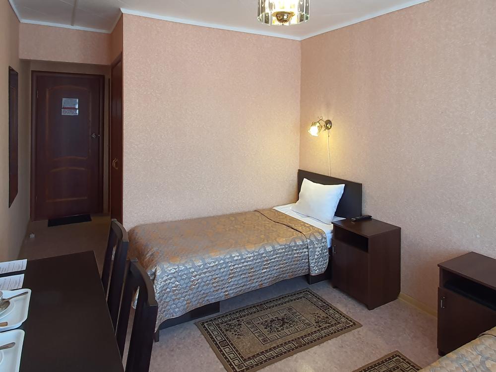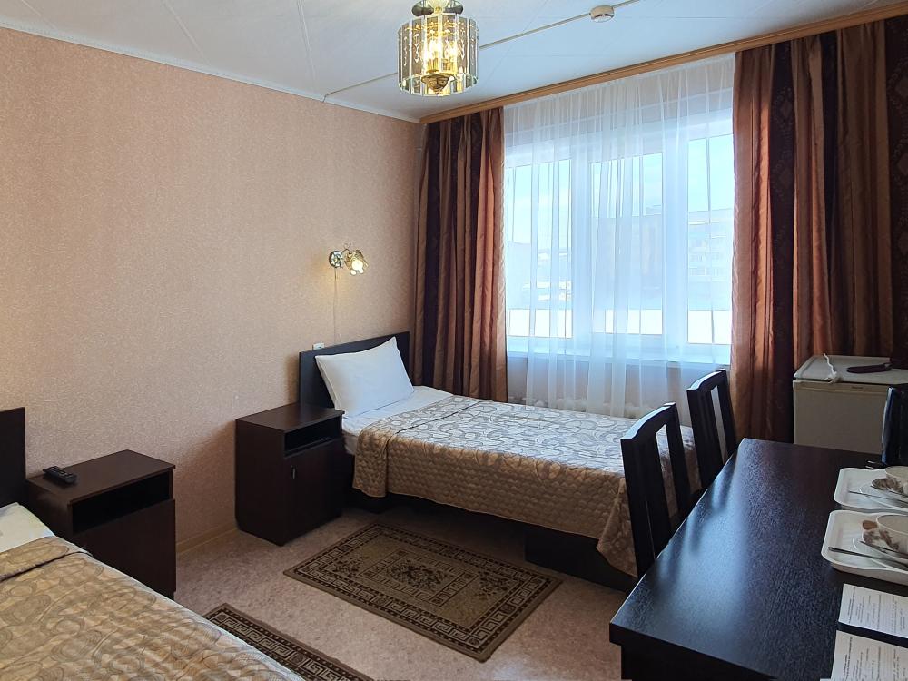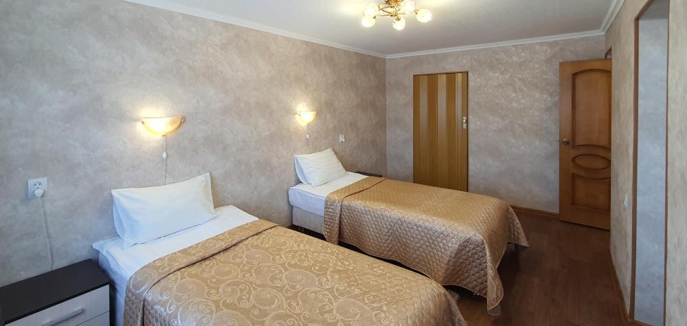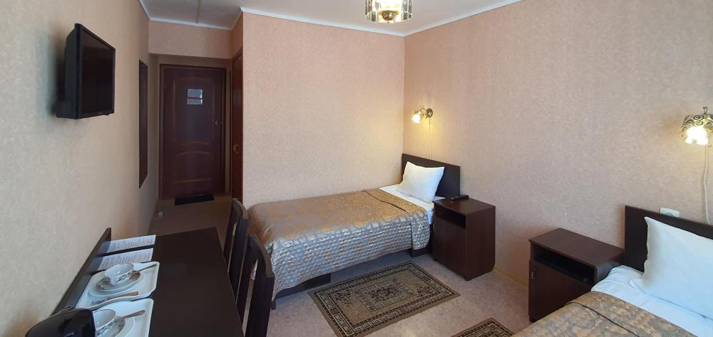 Однокомнатный двухместный номер с капитальным ремонтом. В номере: две односпальные кровати, письменный стол, стул, шкаф, санузел в номере – ванна, кабельное телевидение, телефон, холодильник.