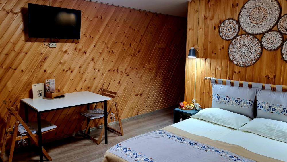 Уютный Номер-Стандарт на 1м этаже с видом на сад. В номере свой санузел с душевой кабиной (шампунь, гель для душа, тапочки, фен), 2сп кровать . Детская кроватка предоставляется по требованию. На территории к вашим услугам зоны для пикника, беседка, русская баня (за доп.плату), прогулочная эко-тропа, берег озера Валдайского в шаговой доступности, батут, спорт.площадка, аренда велосипедов, аренда лодки (весла, электромотор). Гости с домашними питомцами (возможно СТРОГО по согласованию и за доп.плату) проживают по следующим правилам: питомец не спит на белье и диване, ,,не разговаривает в номере,, не остается в номере в ваше отсутствие! Взымается плата за финальную уборку.