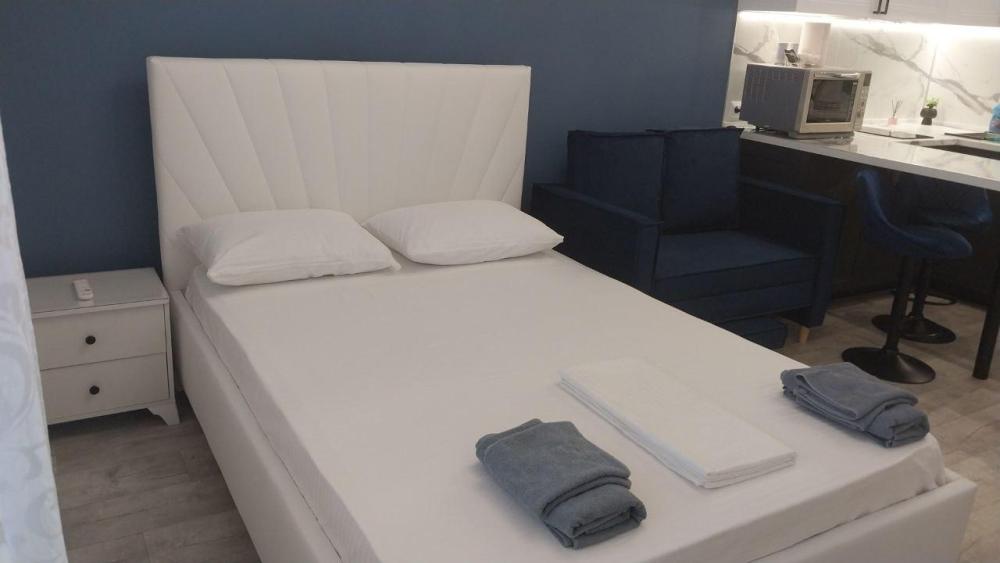 Уютная студия в центре города. Вместительность: 4 человека. Заселение без контакта. Документы: договор с QR-кодом. Просторная студия 28 кв. м с удобной кроватью и раскладывающимся диваном. Кухня в бело-серых тонах, оборудована СВЧ и плитой. Вся необходимая посуда в наличии:...