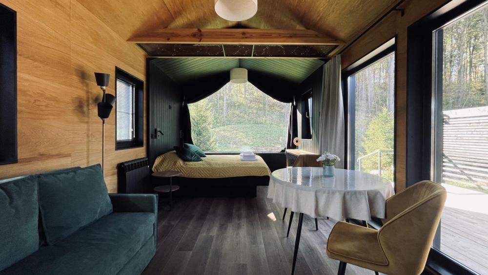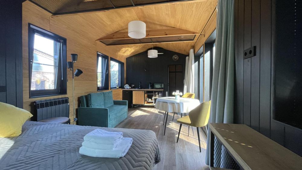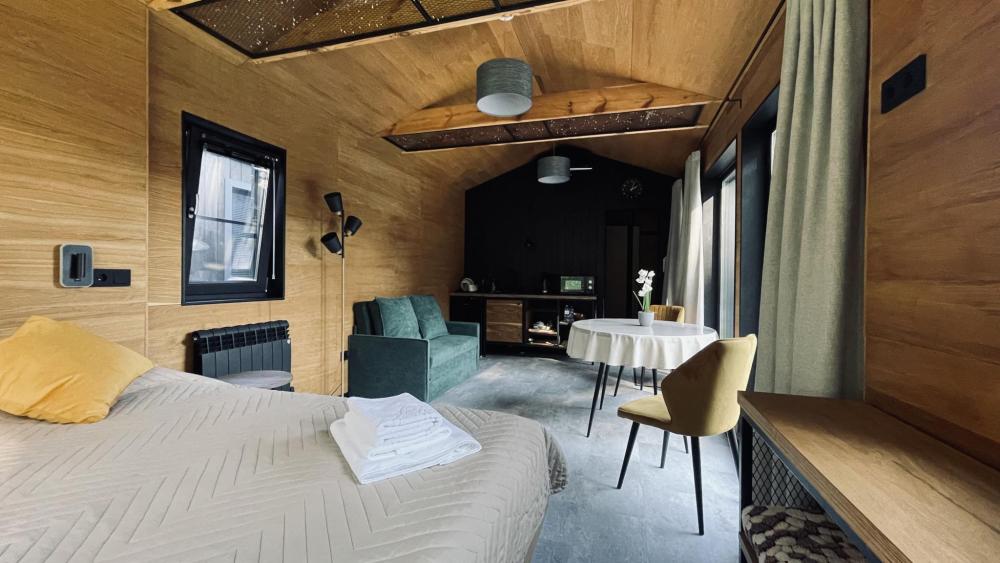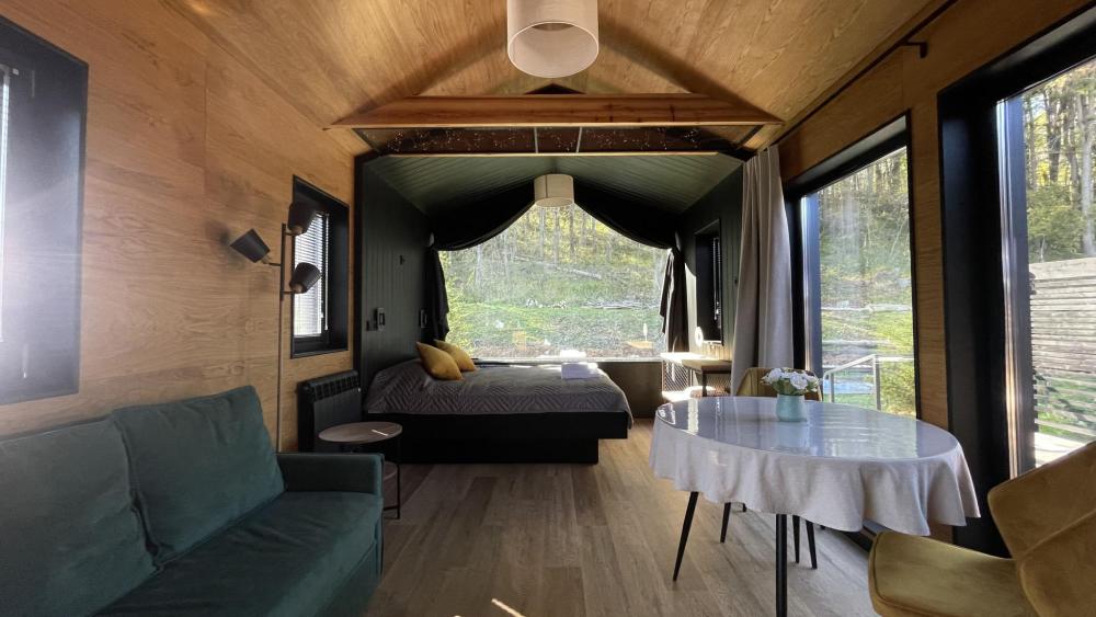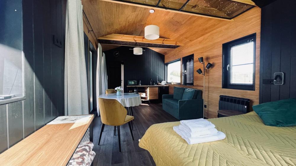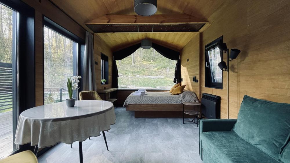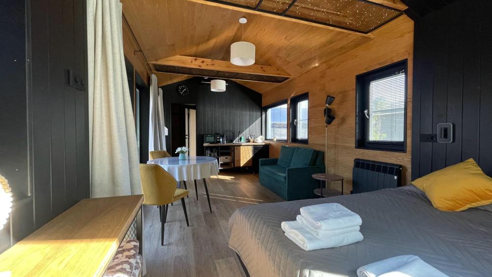 В коттедже: кровать 180х200, Wi-Fi, ванная, раскладной диван, площадь 30 м², комплект постельного белья.