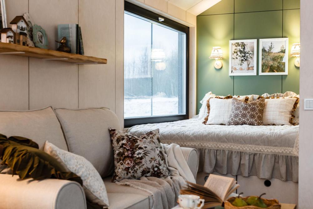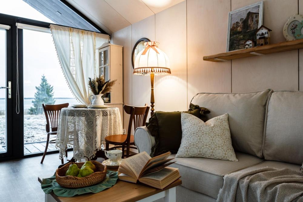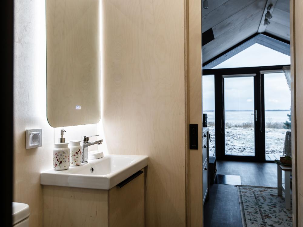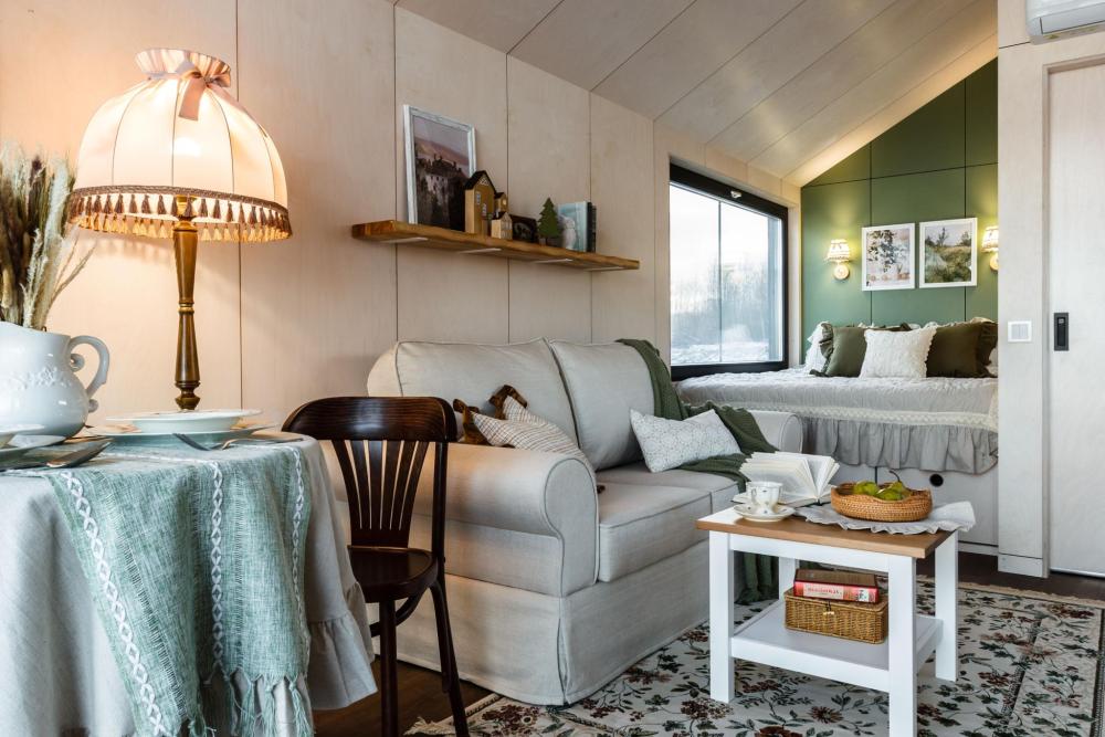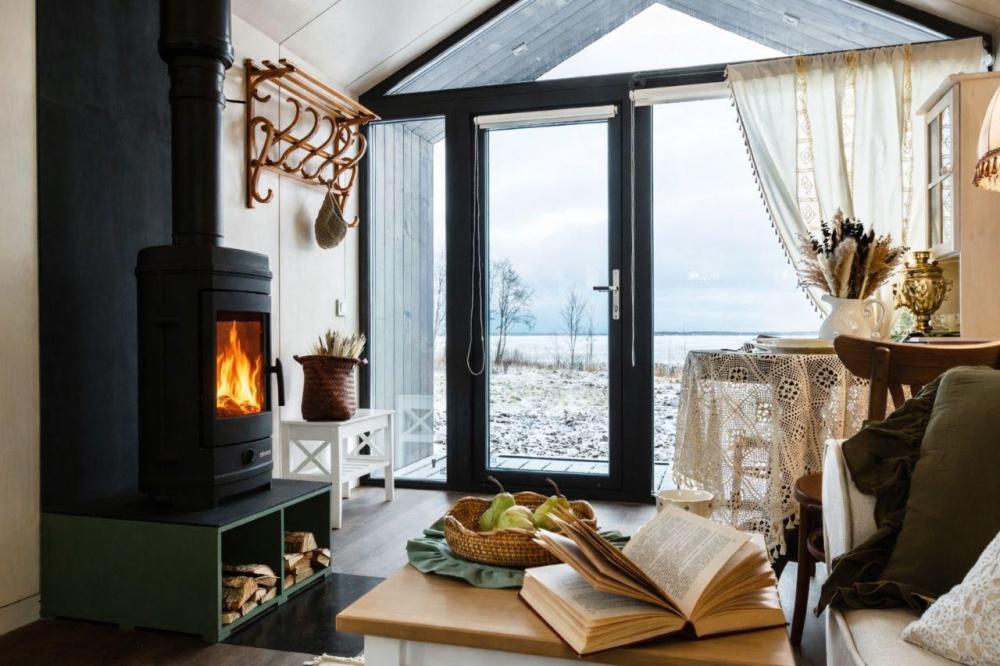 Дом стоит в 30 метрах от озера — с панорамным видом и террасой. Внутри всё устроено атмосферно и по-домашнему: — двуспальная кровать — диван (возможно 1 дополнительное спальное место) — кухня с холодильником, варочной панелью, микроволновой печью, чайником и посудой — обеденный стол — тёплые полы — кондиционер — отдельный санузел с душевой Для уюта и настроения: — самовар — камин — красивая посуда, тёплый свет и эстетичный декор. Снаружи: терраса с видом на озеро — для долгих разговоров, тишины и закатов. Формат дома не предполагает размещение с животными. В доме нет Wi-Fi и телевизора.