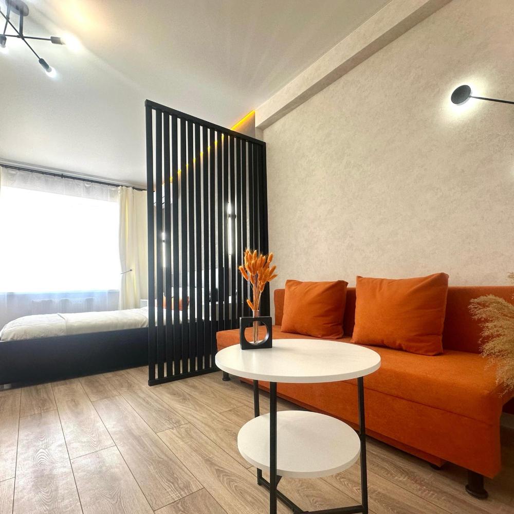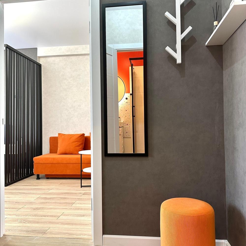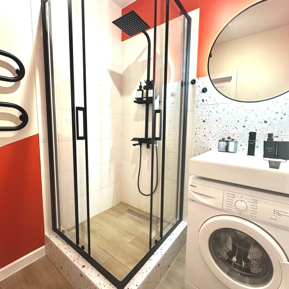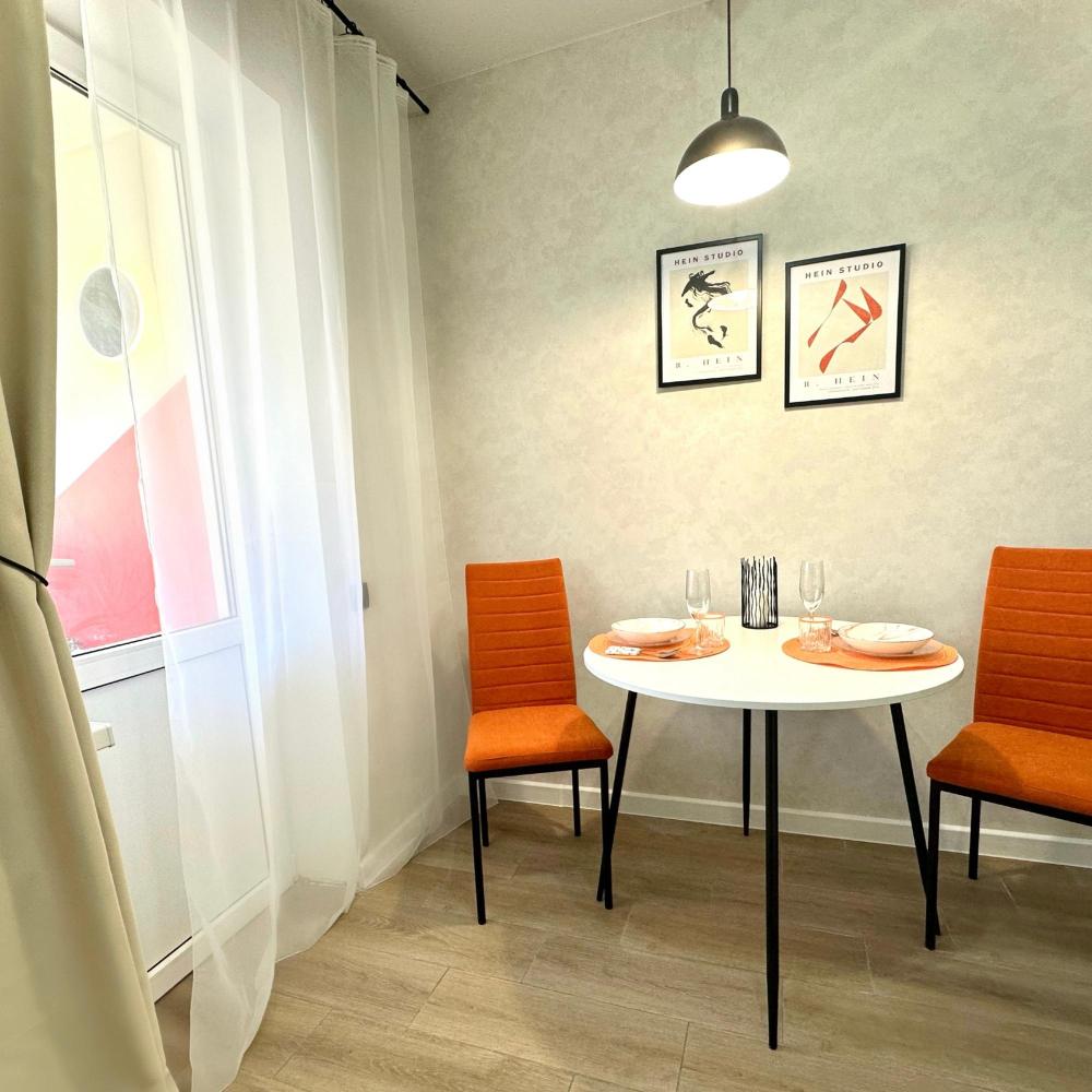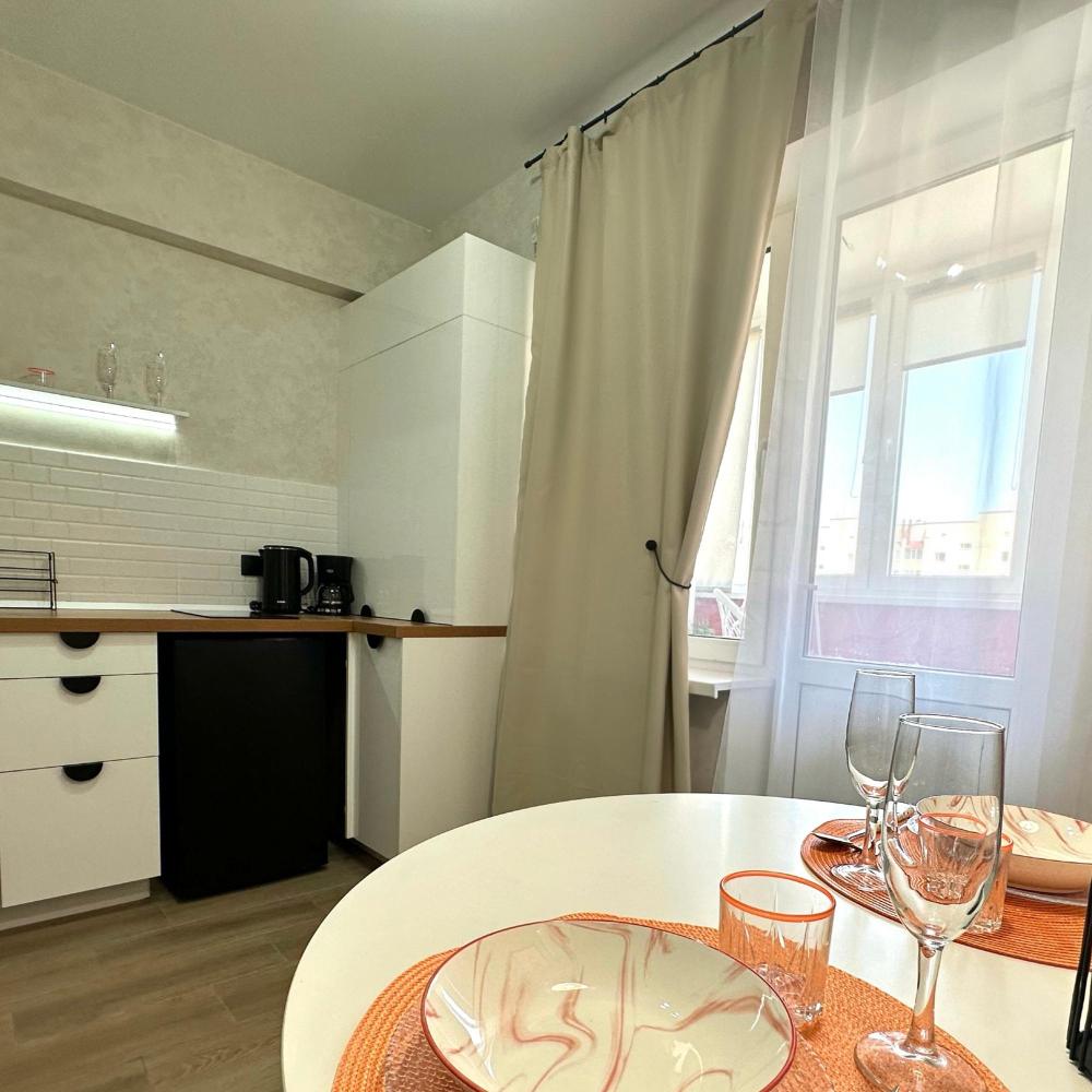 Однокомнатные апартаменты с дизайнерским ремонтом подойдут для размещения 4 человек. Спальные места: двуспальная кровать, раскладной двуспальный диван. Имеется все необходимое для проживания: сплит-система, телевизор со Smart-tv, утюг, гладильная доска, стиральная машина, фен, шторы блэк-аут, теплые полы. На кухне: индукционная плита, микроволновая печь, холодильник, кофеварка, чайник, посуда и кухонные принадлежности. Санузел с тропическим душем. Есть лоджия. Постельное белье, полотенца и средства личной гигиены предоставляются.