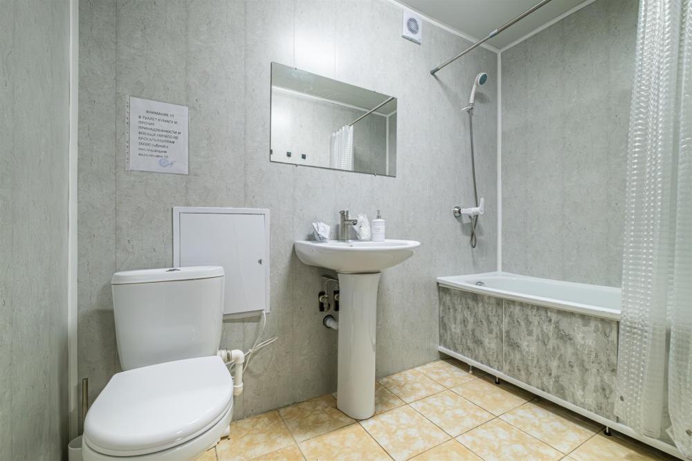 В комнате: LCD телевизор, Wi-Fi, санузел (Ванна унитаз, умывальник), телефон, кондиционер, холодильник, чайник, одноразовые принадлежности, гель, тапочки, шампуни.