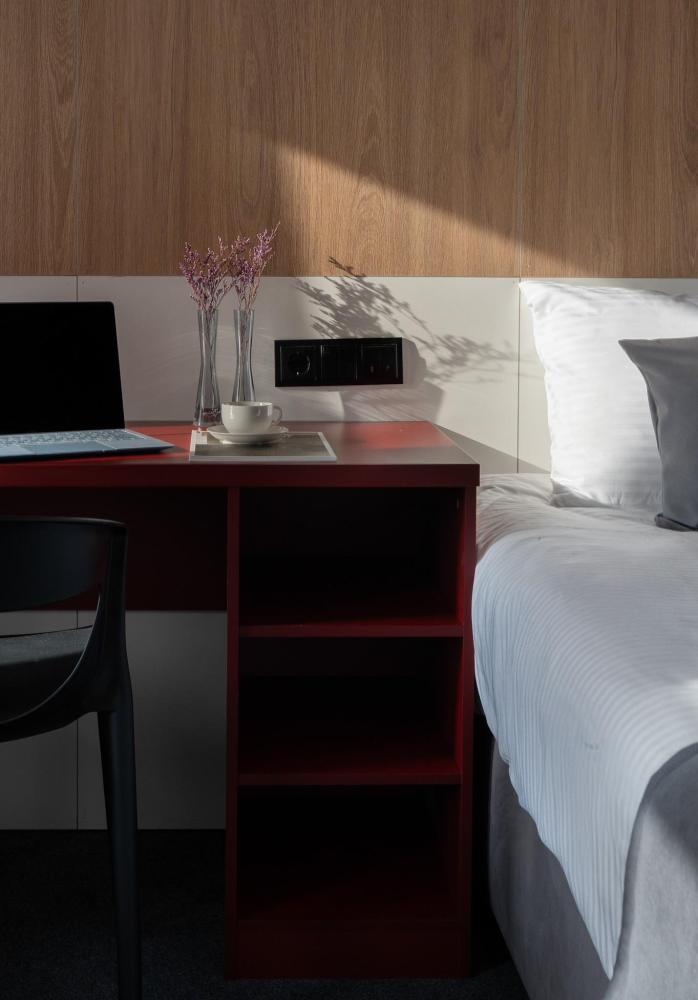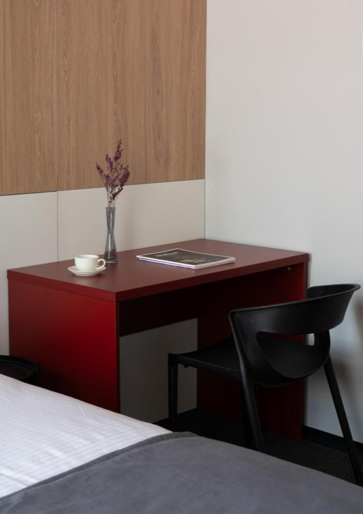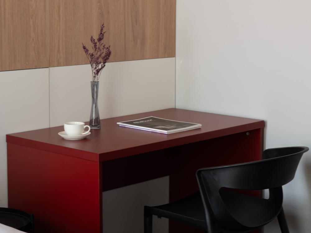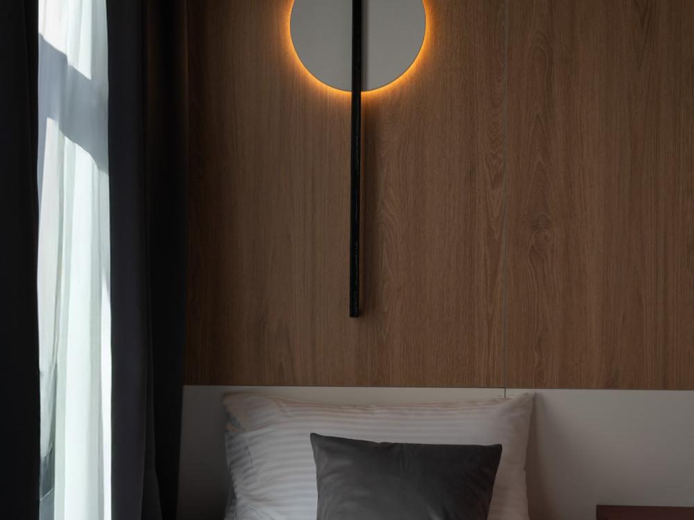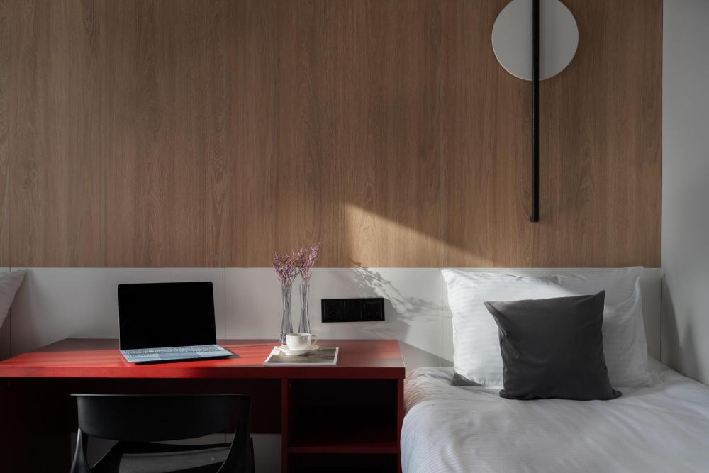 Номер площадью 10 м2. с 1 односпальной кроватью 80*200 см. Вместимость номера - 1 гость. В номере: кондиционер, телевизор, высокие потолки, шкаф, вешалки, зеркало, письменный стол, стул, тапочки, светонепроницаемые шторы. В ванной комнате: душ, туалет, раковина, полотенца, туалетно-косметические принадлежности, фен.