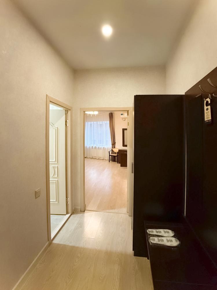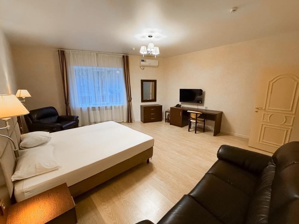 Данная категория однокомнатных номеров с общей площадью 33,4 кв. м. оборудована гостиным уголком, чайником и всем необходимым для работы и отдыха. Комфорт и удовольствие от пребывания в отеле Вам гарантированно обеспечат удобная мебель, шумоизоляция и многое другое. Эта категория номеров идеально подходит для людей, предпочитающих всегда иметь под рукой все самое необходимое. LCD телевизор ЖК LED, 32 Wi-Fi Кондиционер Фен Туалетные принадлежности ду