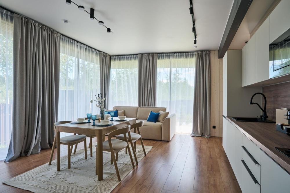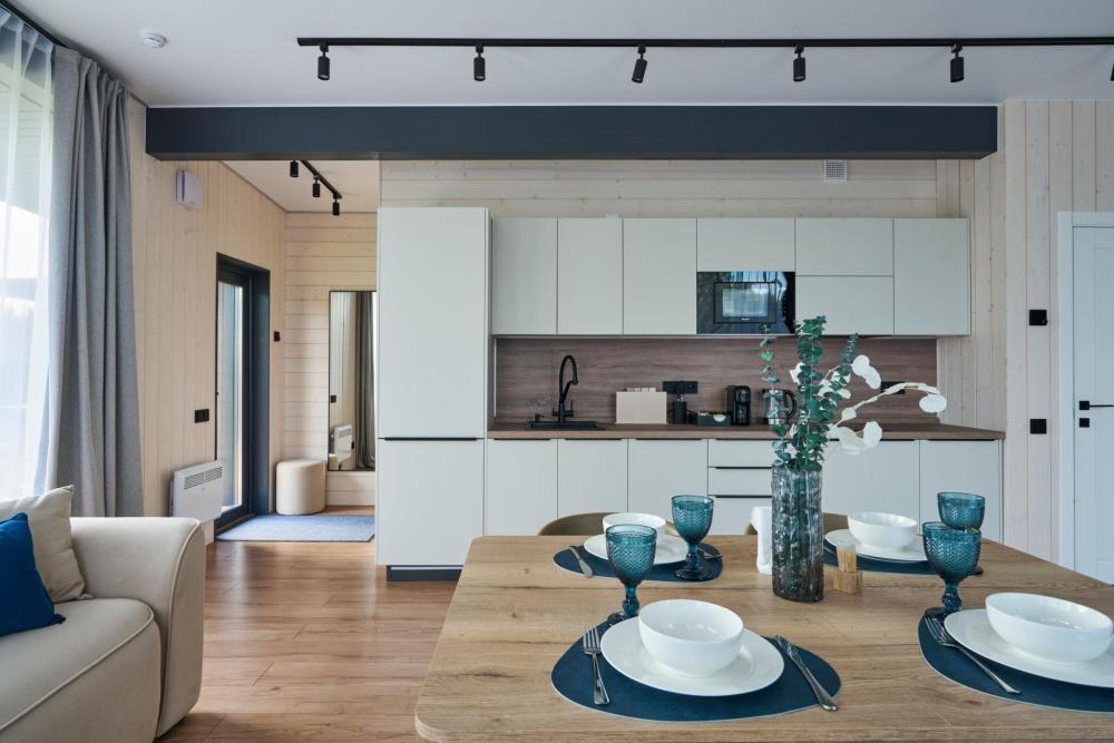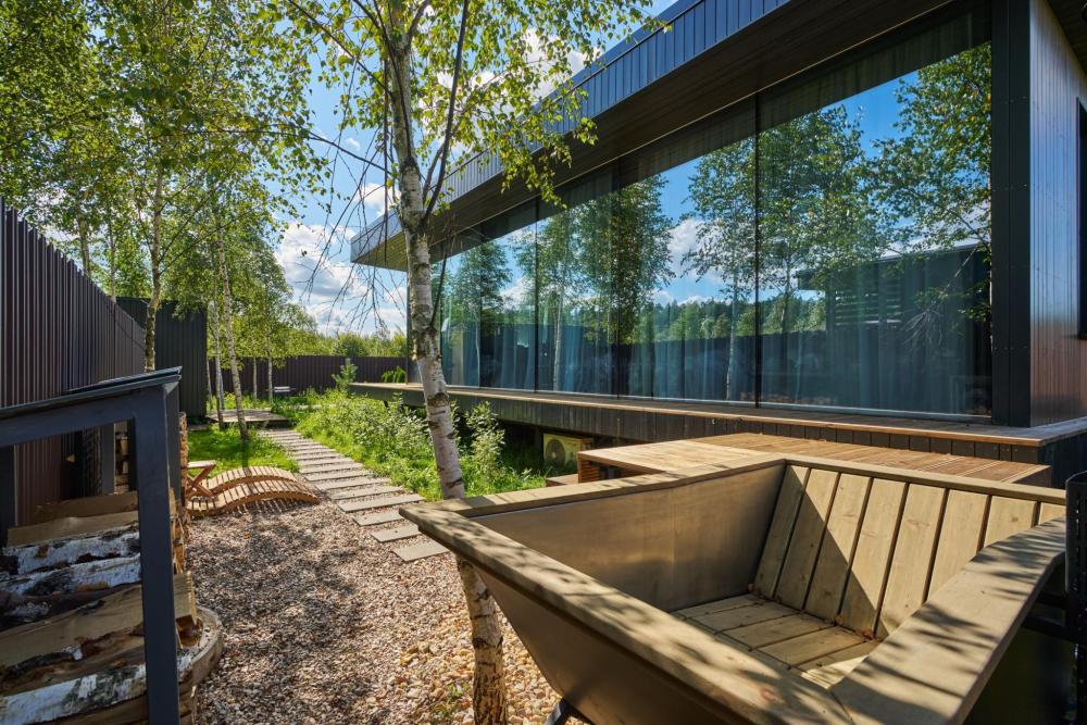 В доме отдельная спальня, просторная гостиная с диваном, камин — создаёт атмосферу тепла и покоя, оборудованная кухня: техника, посуда, всё необходимое; санузел с душем; чистое бельё, полотенца, мыльные принадлежности, кондиционер. Дом оснащён системой «умный дом» и тёплыми полами, которые сохраняют комфорт даже в сильные морозы.А камин и сауна превращают каждую зиму в праздник уюта.С Алисой можно включить музыку, фильм или узнать погоду, не выходя из-под пледа. На участке: горячий чан под открытым небом, собственная мангальная зона, парковка, детская площадка,