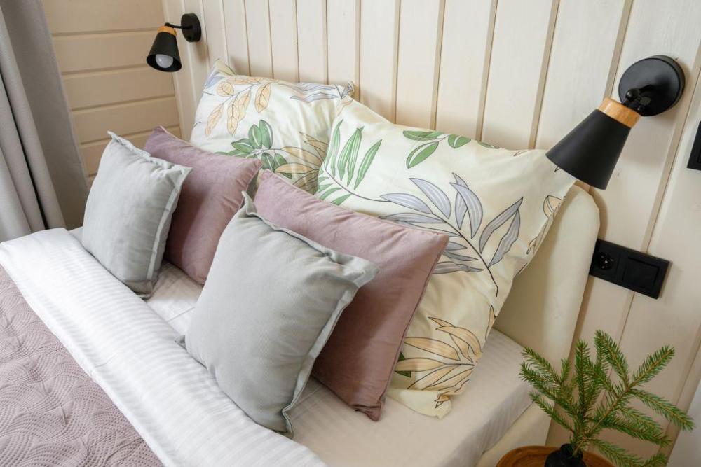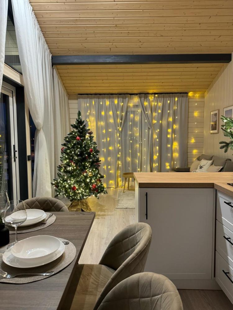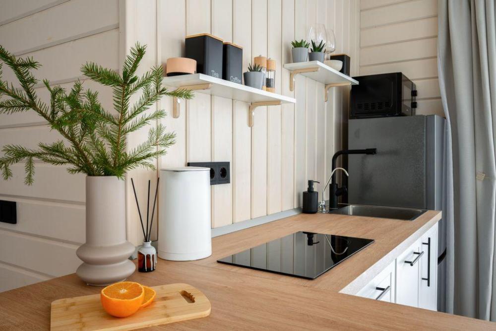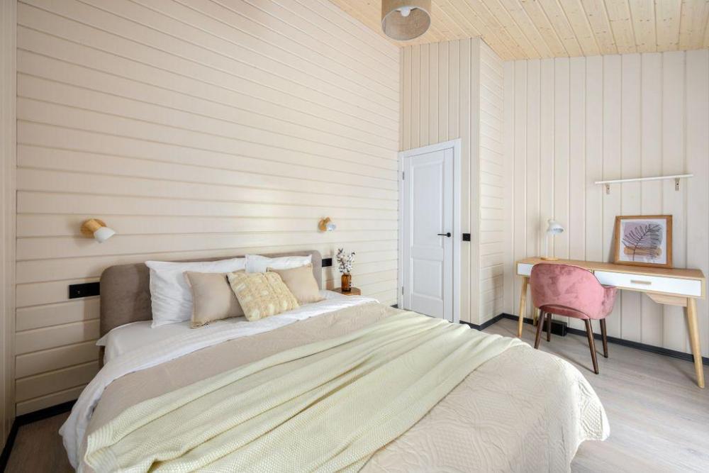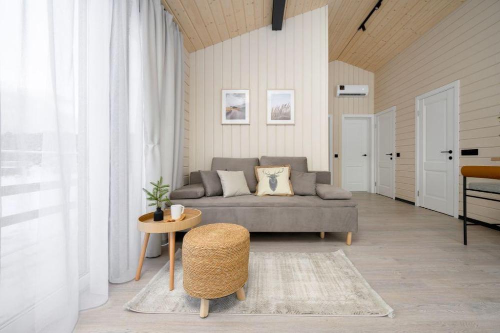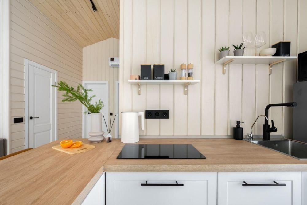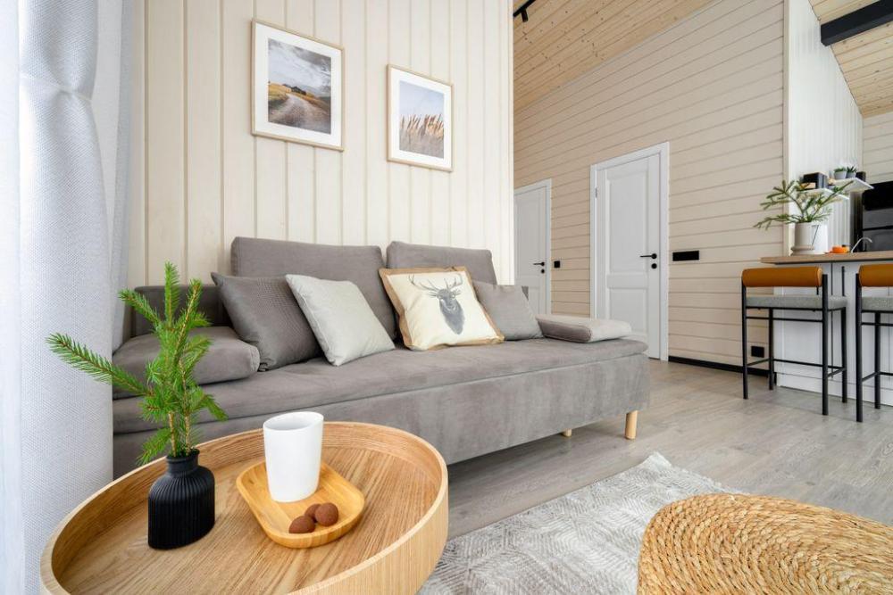 Пространство для жизни и отдыха (80 м² с верандой)Спальные зоны: Спальня 1 - двуспальная кровать (160×200 см); Спальня 2 - двуспальная кровать (140×200 см); Гостиная - раскладной диван (вмещает 2 человек). Общие зоны: Отдельная кухонно-столовая зона - место для уютных ужинов; Просторная веранда с двумя садовыми креслами; Рабочий стол - для комфортной удалённой работы. Во всех комнатах - панорамное остекление: наслаждайтесь видами на лес из любого уголка дома. Комфорт, продуманный до мелочей. Кухня (всё включено): Вместительный холодильник; Индукционная плита; Посудомоечная машина; Свч, чайник; Вся необходимая посуда и бокалы; Базовые продукты: чай, кофе, сахар, соль, масло.