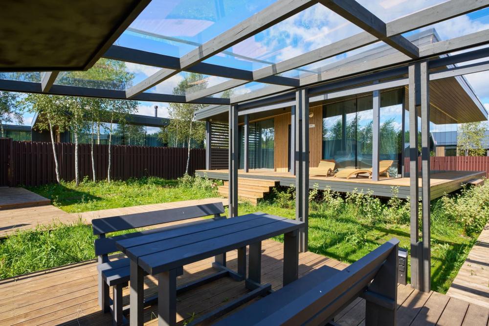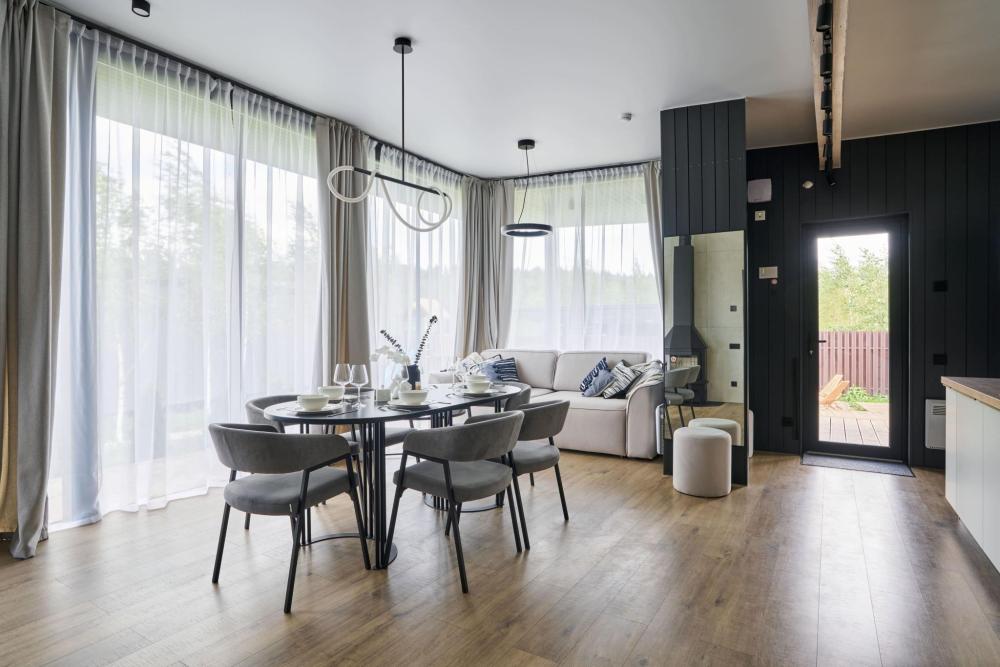Внутри коттеджа: 3 отдельные спальни (односпальные кровати можно объединить). Просторная гостиная с мягкой мебелью. Камин, который создаёт особую атмосферу уюта. Полностью оборудованная кухня. Санузел с душем. Сауна в доме. Кондиционер. Вся необходимая техника, посуда, текстиль и мыльные принадлежности.
