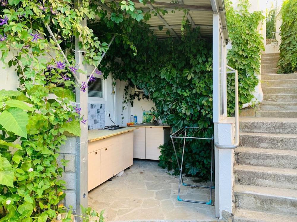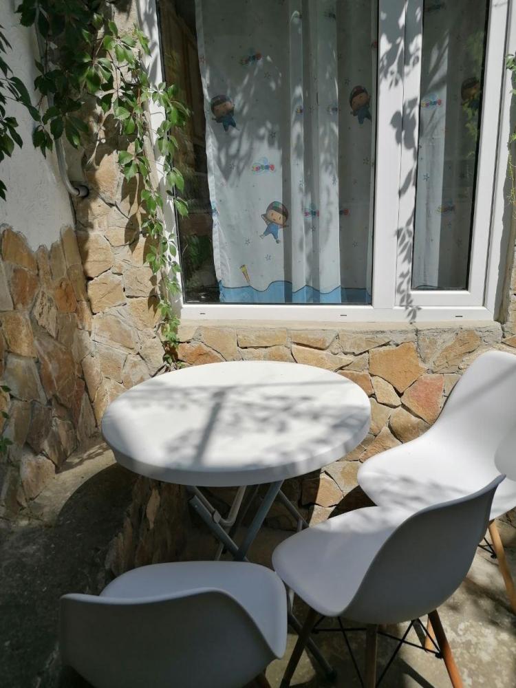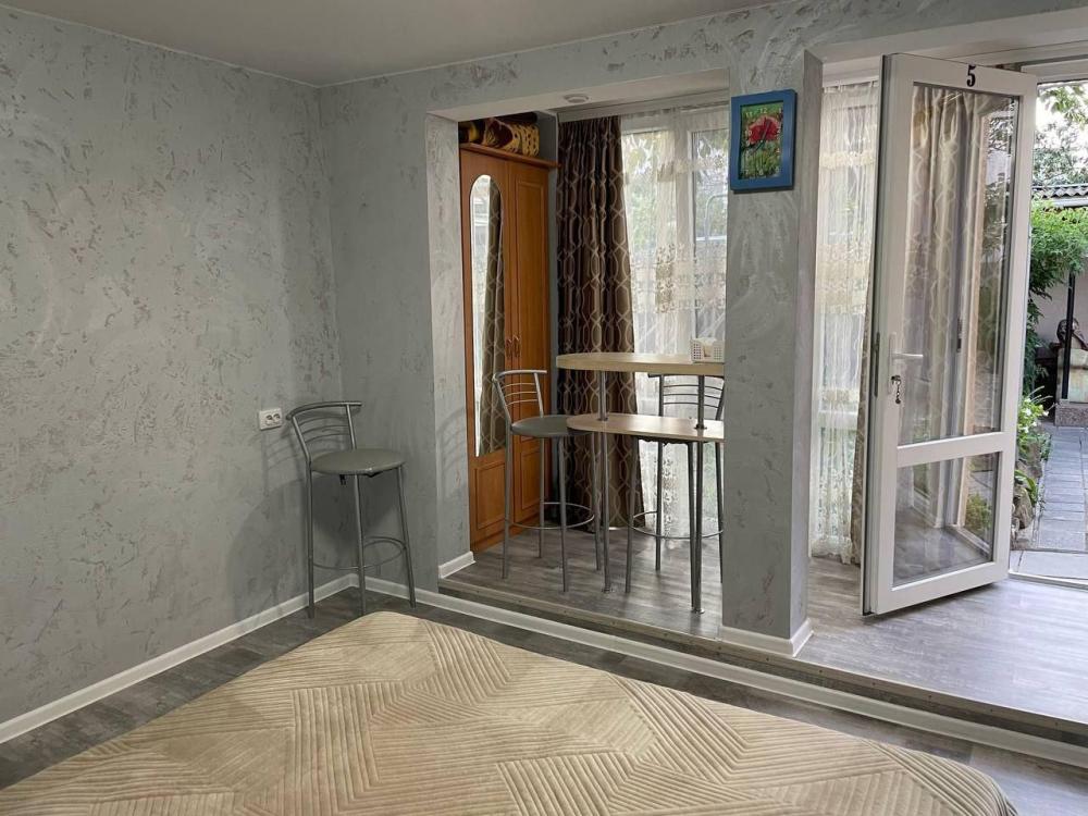 Услуги и удобства: 1 двуспальная кровать , 1 диван-кровать, телевизор, холодильник, столик, кондиционер, электрический чайник, белье, полотенца, шкаф, тумба, дополнительные одеяла, вид на сад, душ и туалет в номере. Мебель на улице, общая кухня, обеденная зона в саду. Помещение полностью находится на первом этаже.