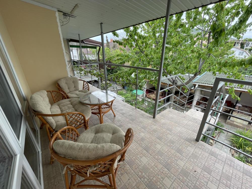 Услуги и удобства: 1 двуспальная кровать , 1 диван-кровать, Телевизор, Холодильник, Столик, Кондиционер, Электрический чайник, Белье, Полотенца, Шкаф, Сервант, Пуфики, Тумба, Дополнительные одеяла, Балкон, Вид на сад, Душ и туалет в номере. Мебель на улице, Общая кухня, Обеденная зона на улице, Помещение полностью находится на втором этаже.