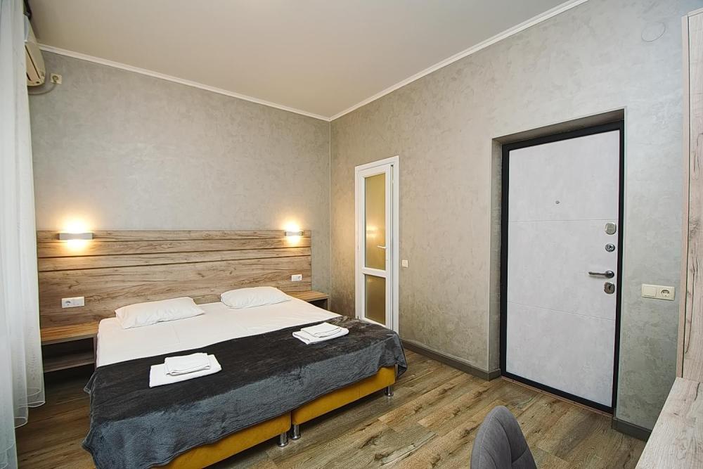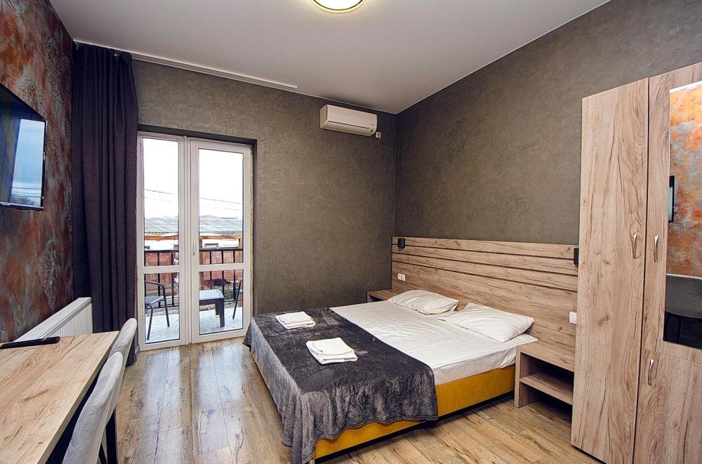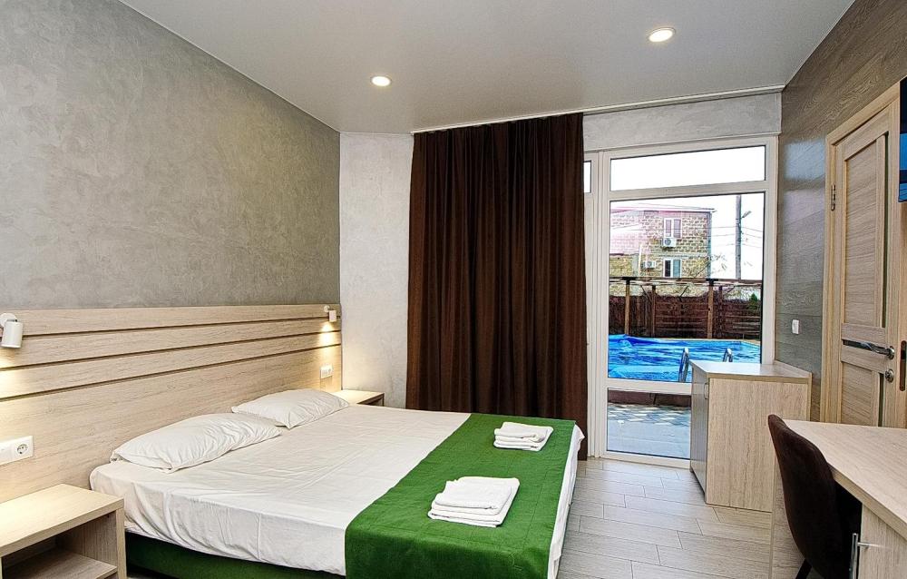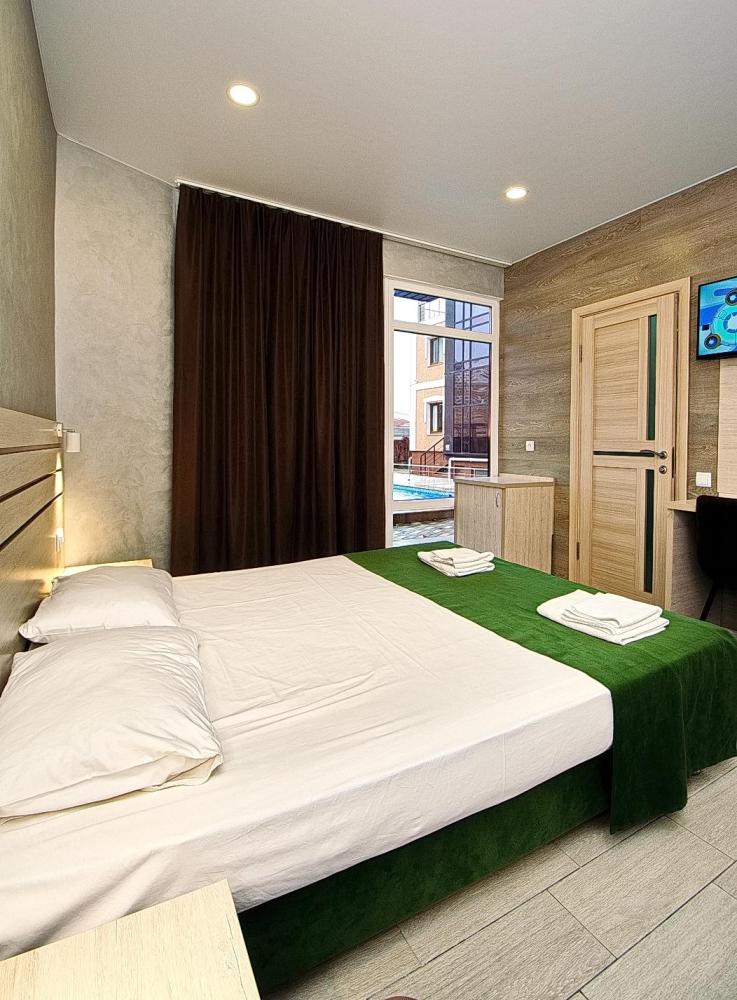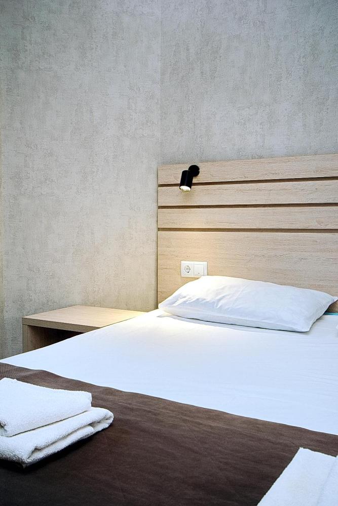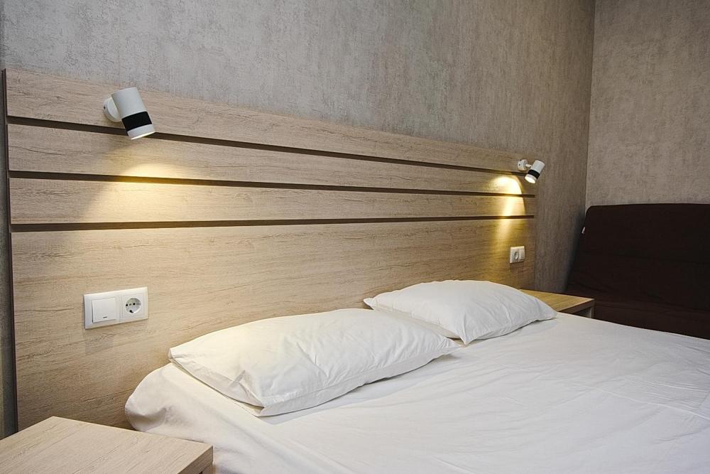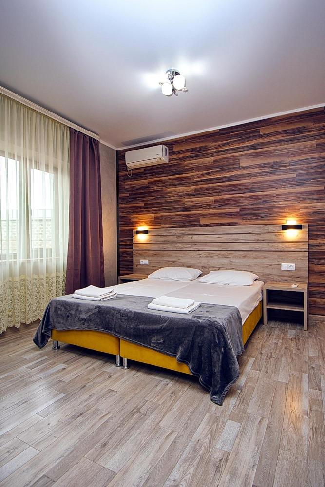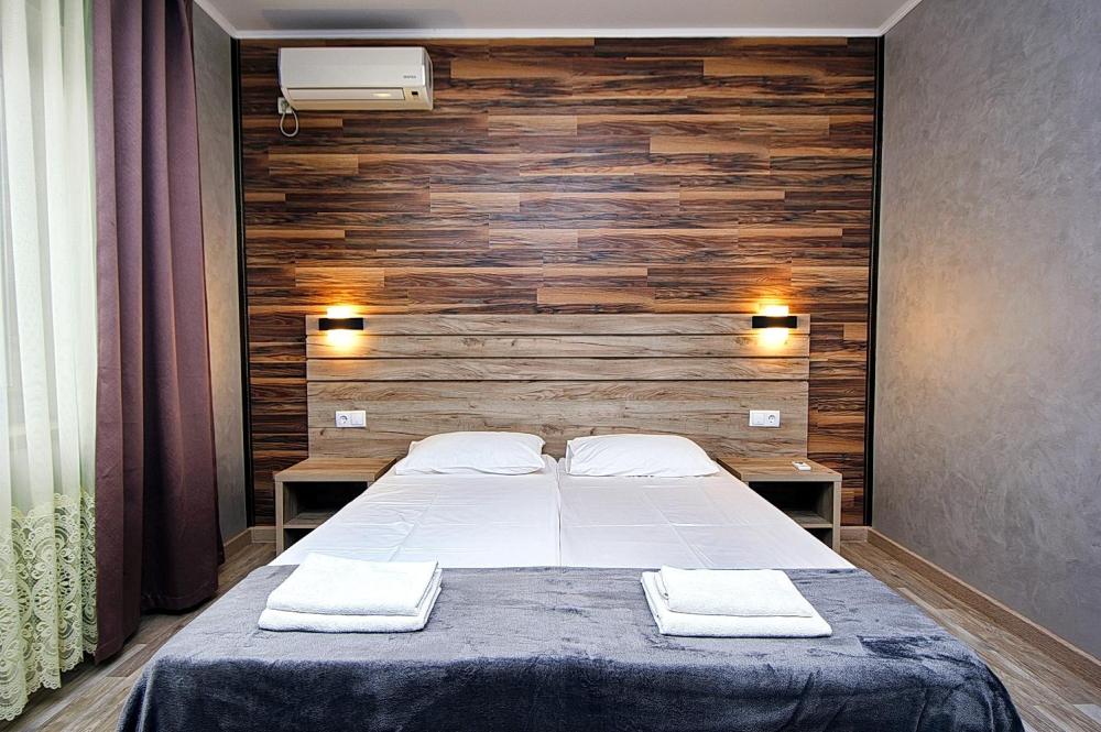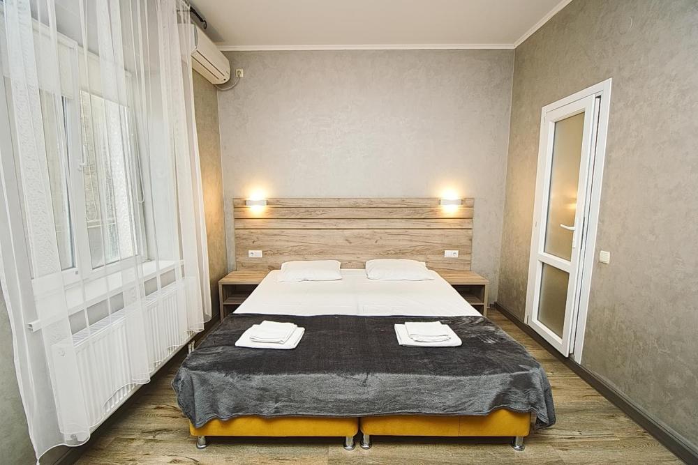 Двухместный номер стандарт площадью 15 кв.м. оснащенный всем необходимым для комфортного отдыха гостей. В номере: две односпальные кровати или двуспальная кровать, телевизор, сплит система, холодильник, тумбочки, шифоньер, полотенца, душ и санузел.