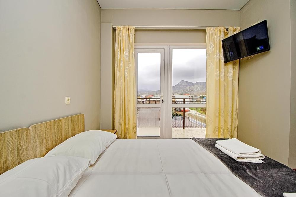 Трехместный номер люкс площадью 20 кв.м. оснащенный всем необходимым для комфортного отдыха гостей. В номере: двуспальная кровать, односпальная кровать, телевизор, сплит система, холодильник, тумбочки, шифоньер, столик, полотенца, душ и санузел в номере, фен, чайник.