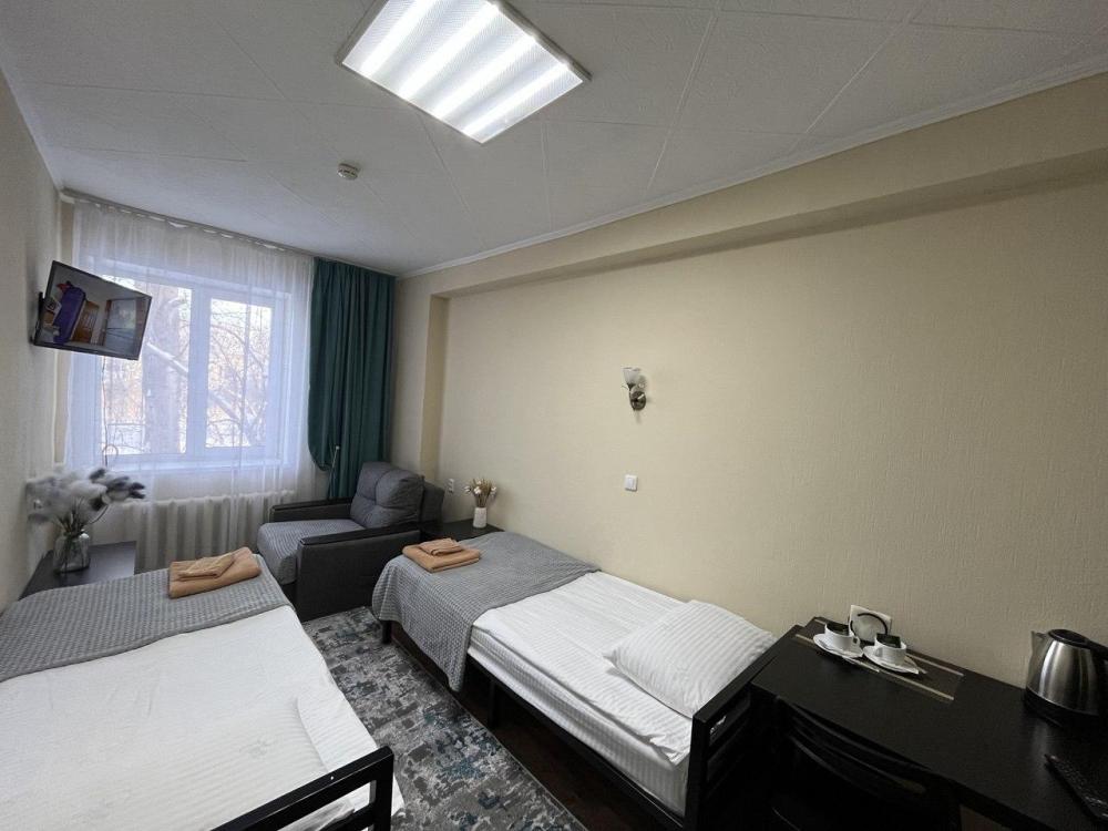 Однокомнатный двухместный номер с удобствами. Две односпальные кровати.