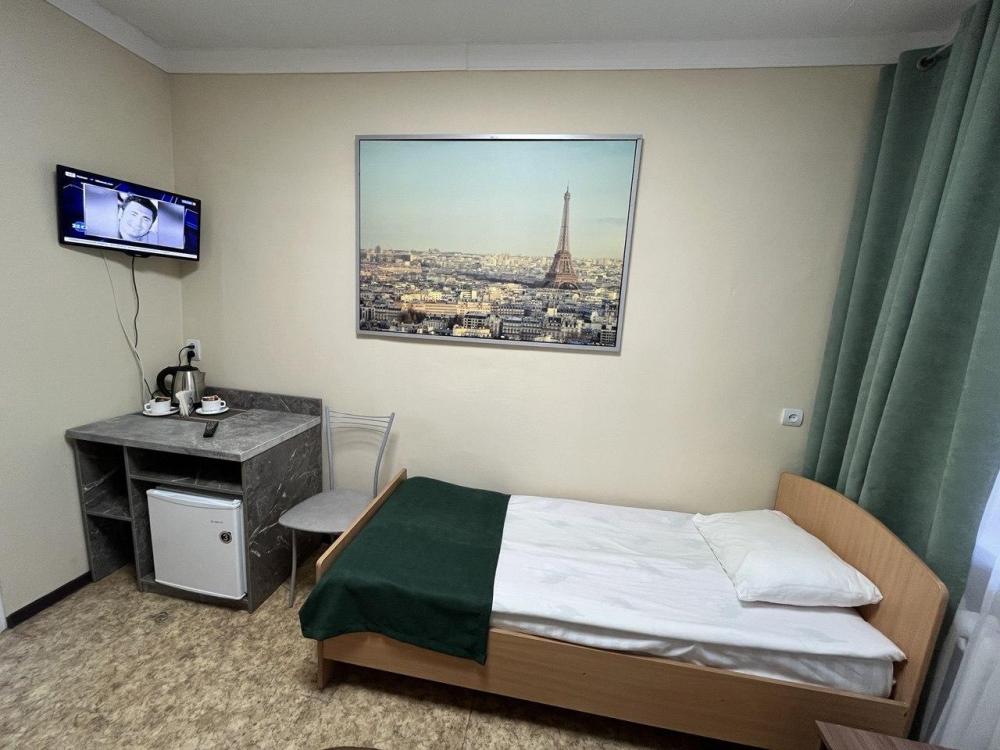 Однокомнатный, одноместный номер с удобствами. Одна двуспальная кровать.