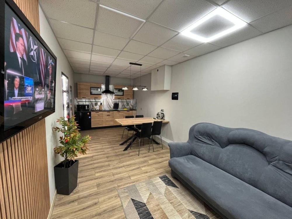 Двухкомнатный восьмиместный номер. Четыре двухъярусные кровати. Диван в комнате отдыха.