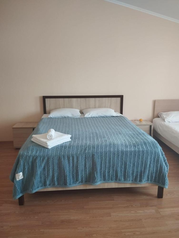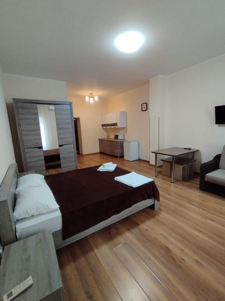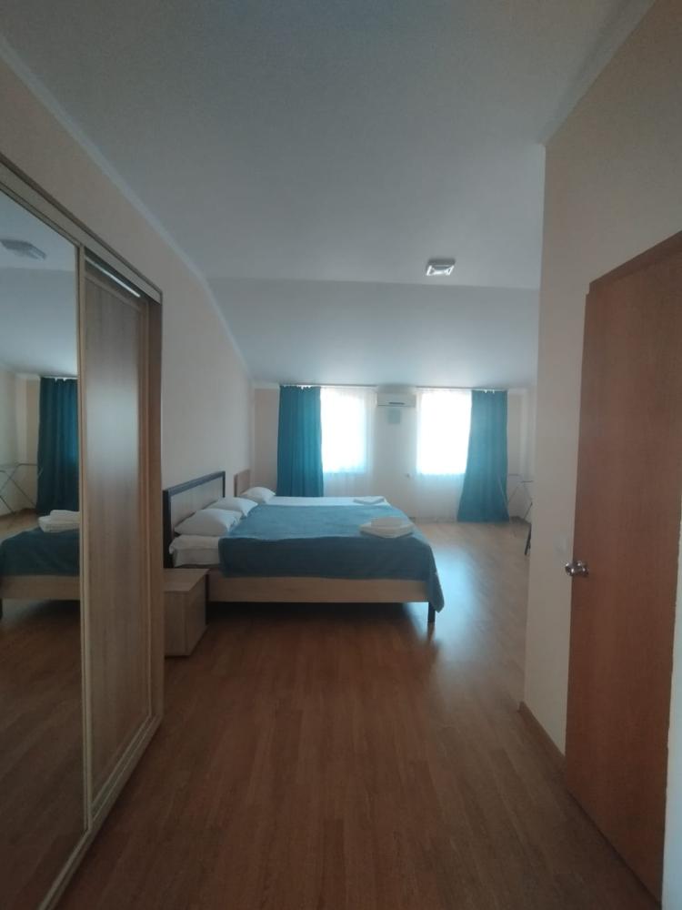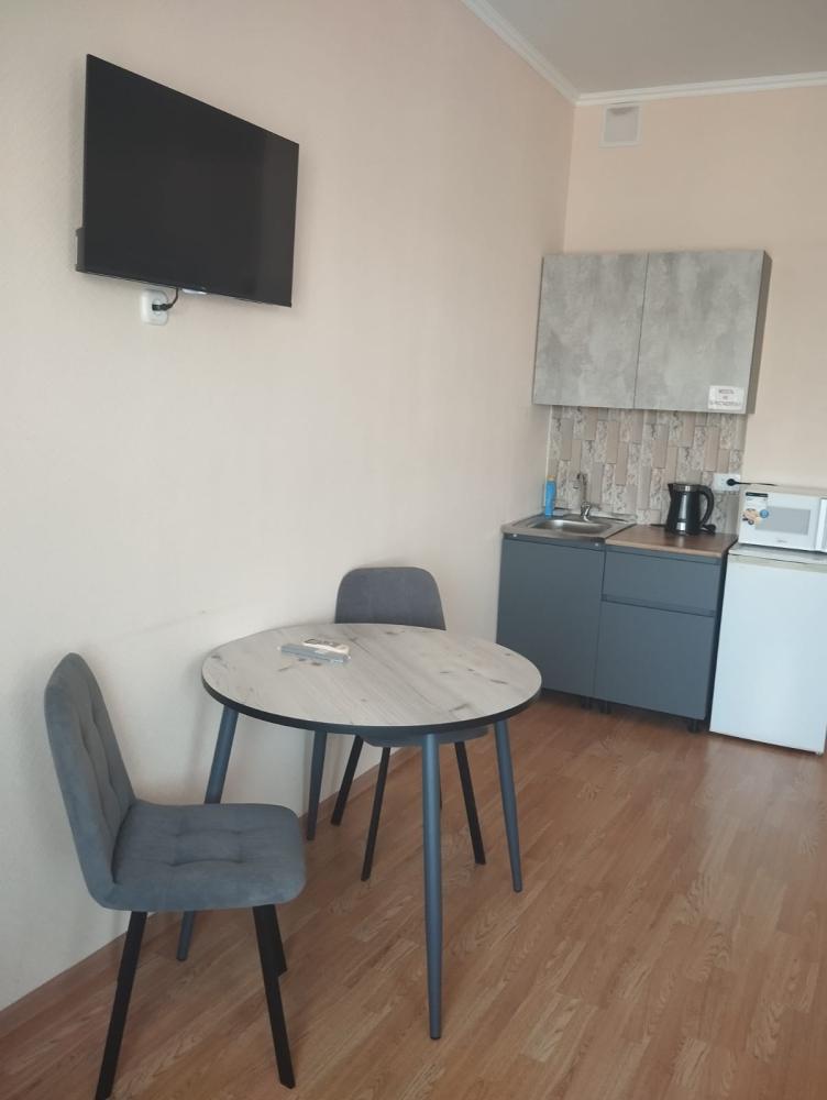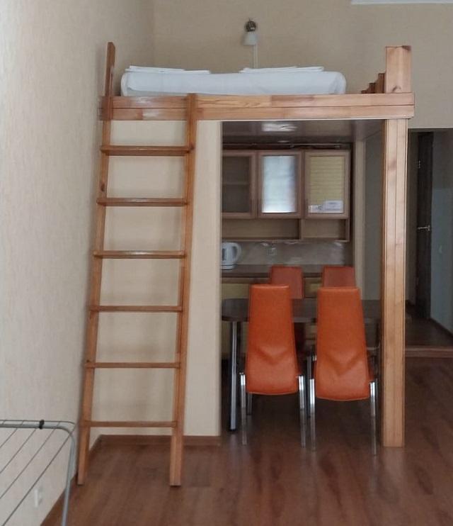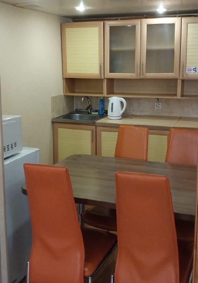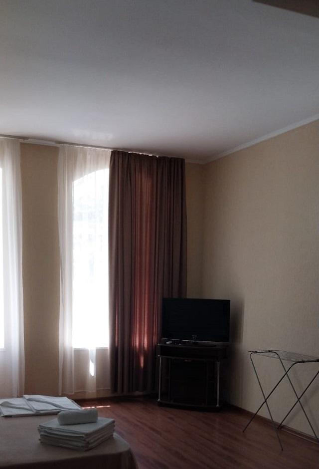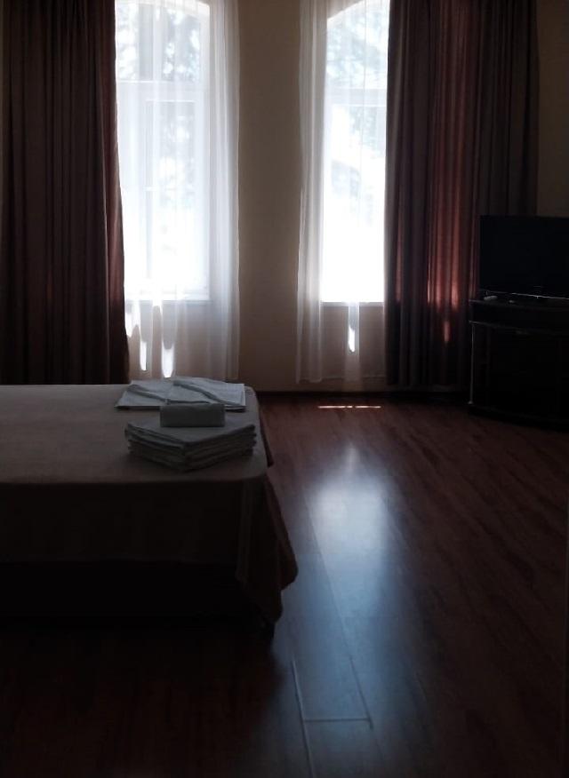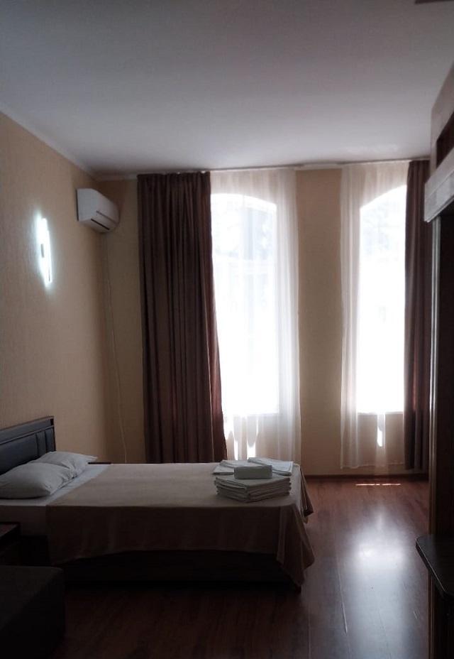 В номере стол, стулья, шкаф, прикроватные тумбочки, вешалка, зеркало, кухонный гарнитур, обеденная зона. Удобства: сплит-система, холодильник, телевизор, Wi-Fi интернет, СВЧ, эл. чайник, посуда, фен