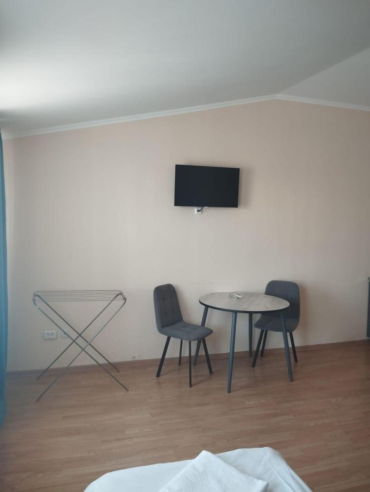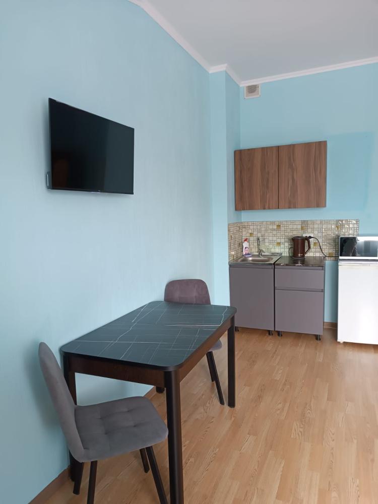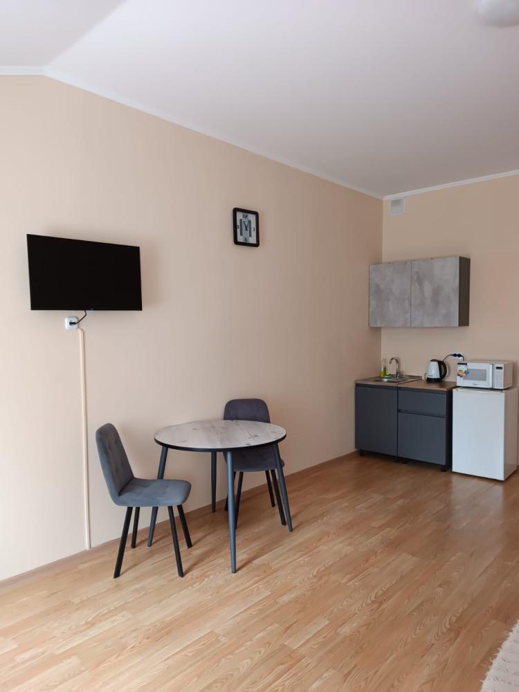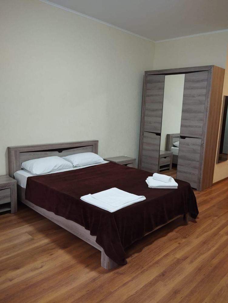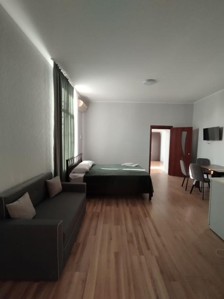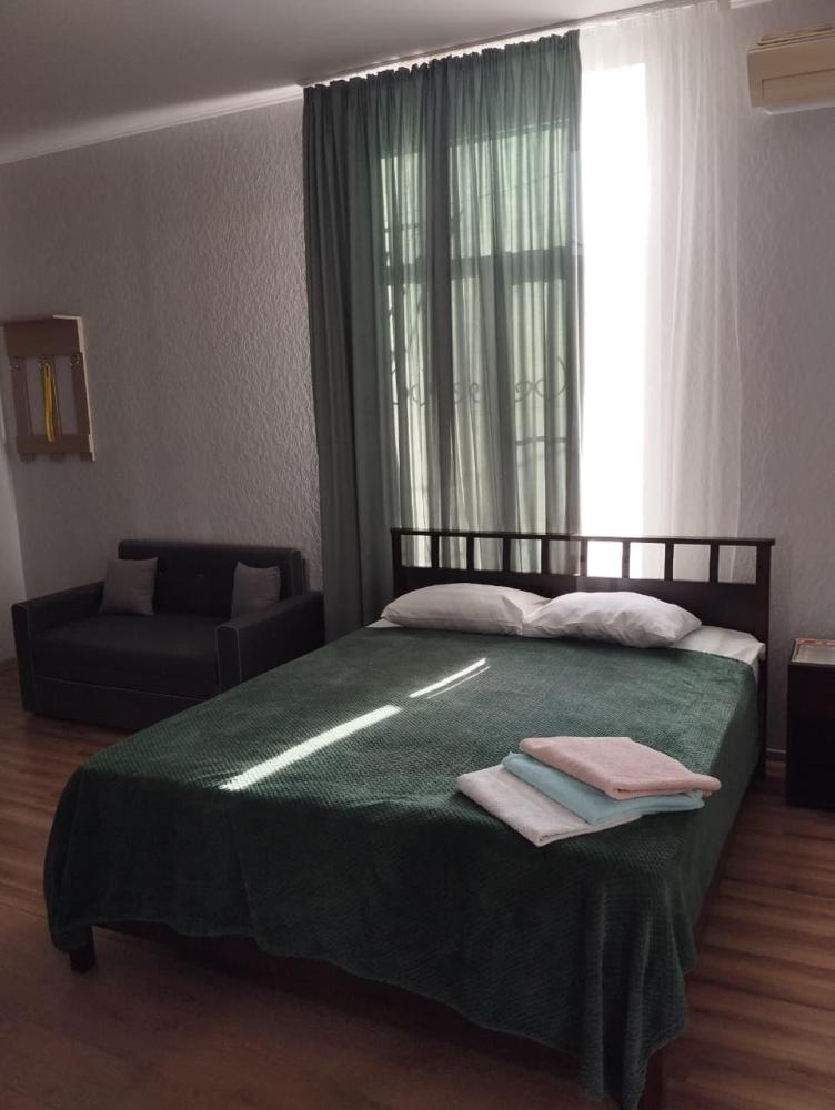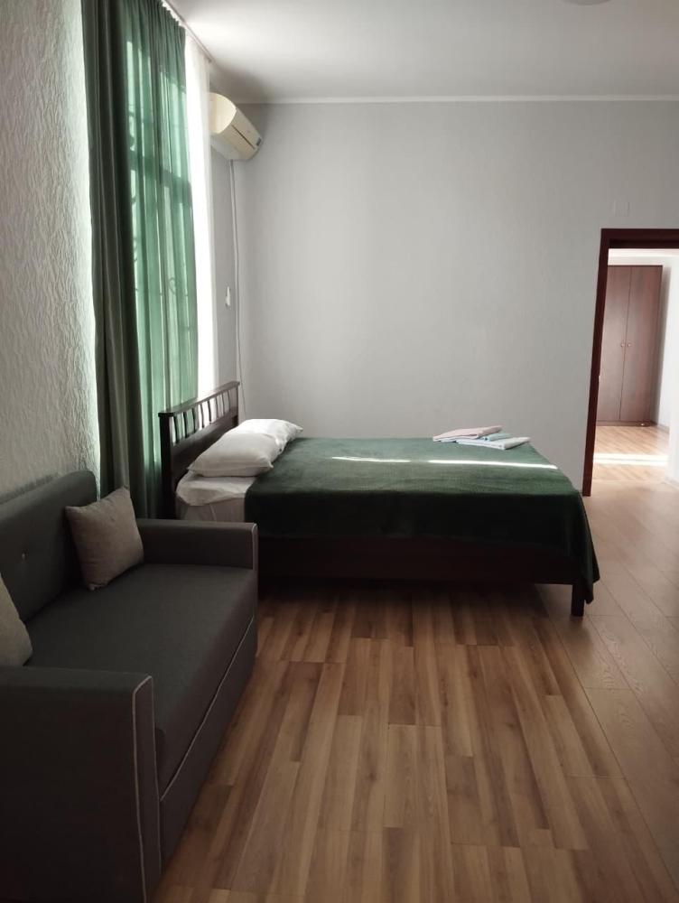 В номере стол, стулья, шкаф, прикроватные тумбочки, вешалка, зеркало, кухонный гарнитур, обеденная зона. Удобства: сплит-система, холодильник, телевизор, Wi-Fi интернет, СВЧ, эл. чайник, посуда, фен