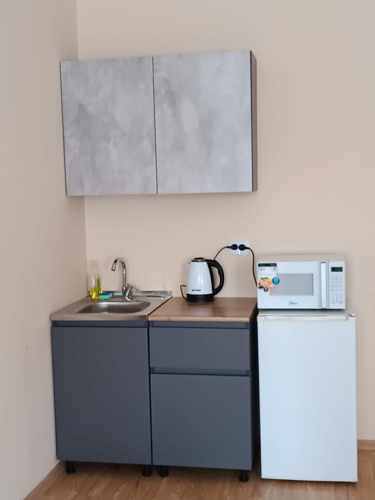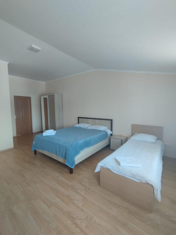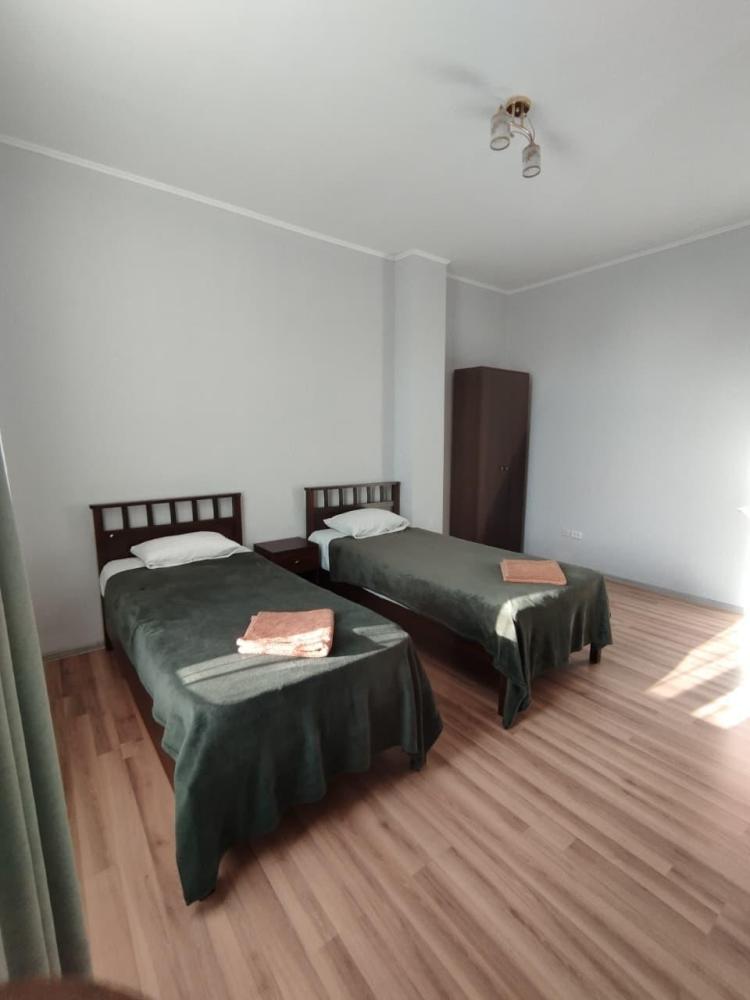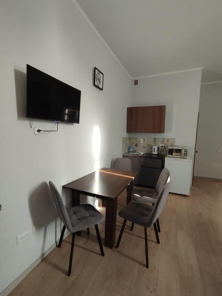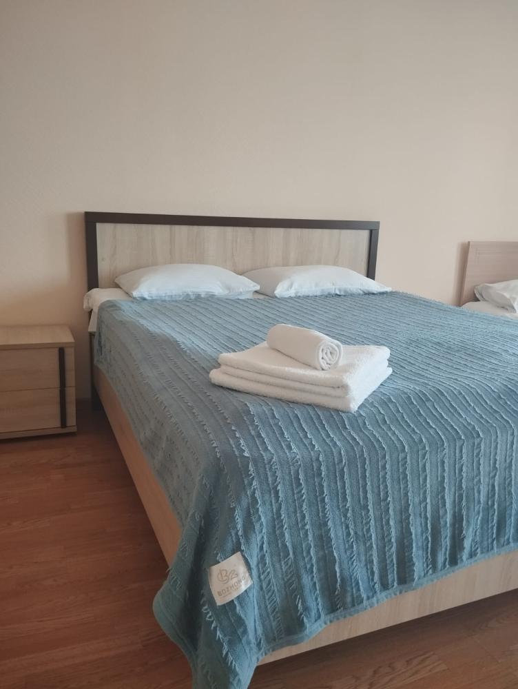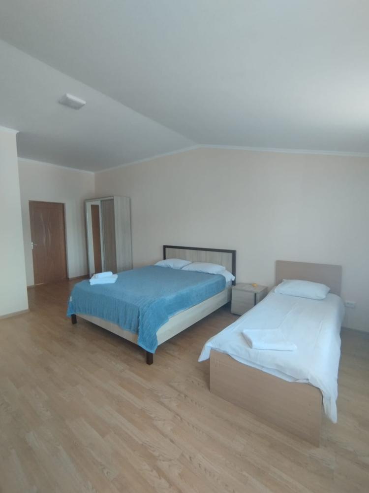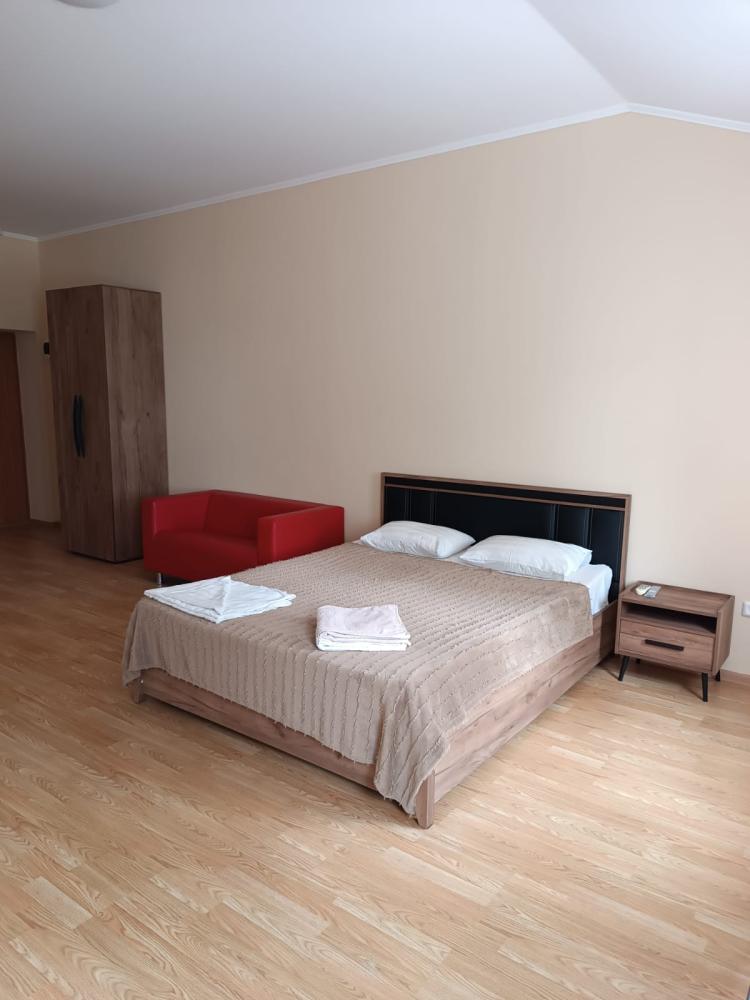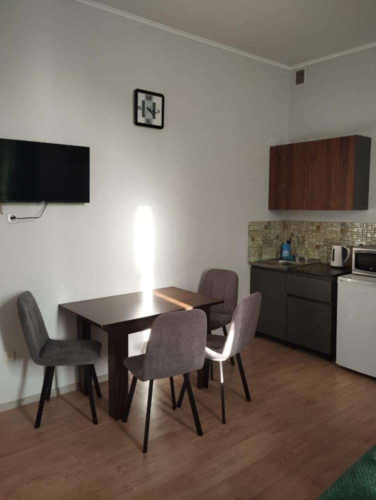 В номере стол, стулья, шкаф, прикроватные тумбочки, вешалка, зеркало, кухонный гарнитур, обеденная зона. Удобства: сплит-система, холодильник, телевизор, Wi-Fi интернет, СВЧ, эл. чайник, посуда, фен