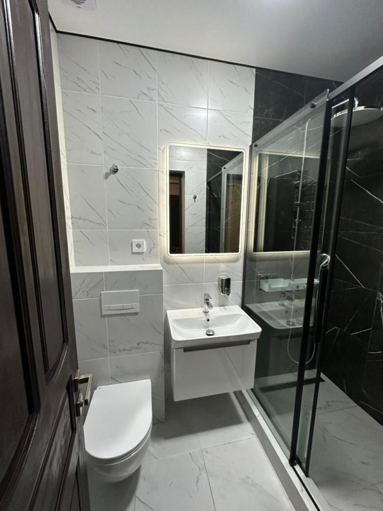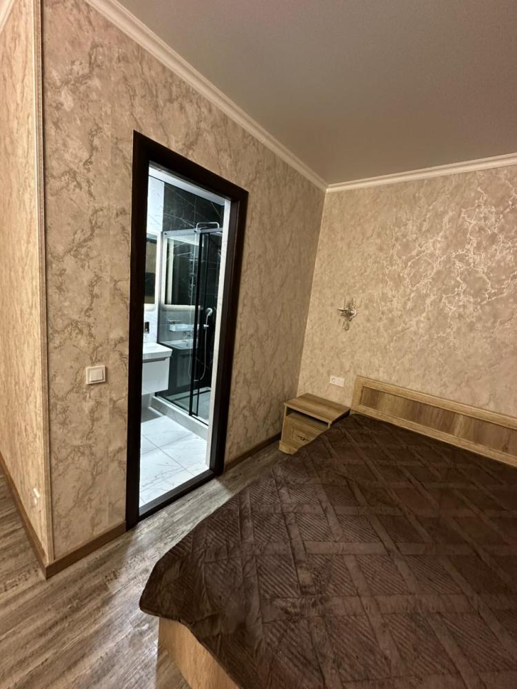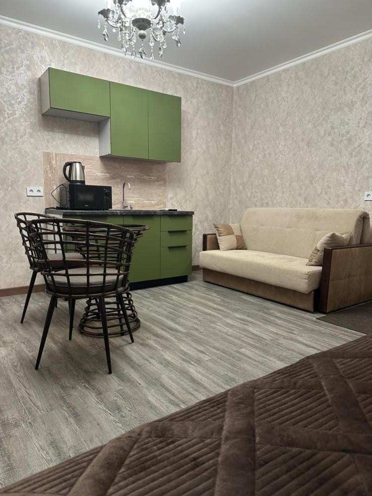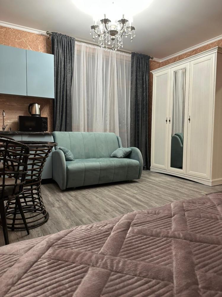 3-х местные номера студии, с качественным ремонтом, хорошей мебелью, оборудованные всем необходимым для комфортного проживания, каждый по 25 кв. В каждом номере имеется, телевизор, кондиционер, сейф, микроволновая печь, чайник, компактный холодильник, фен, полотенцесушитель, необходимая посуда для приема пищи. Санузлы с душевыми в номерах. Гладильная доска, утюг на этаже. Каждый номер оснащен мини кухнями.