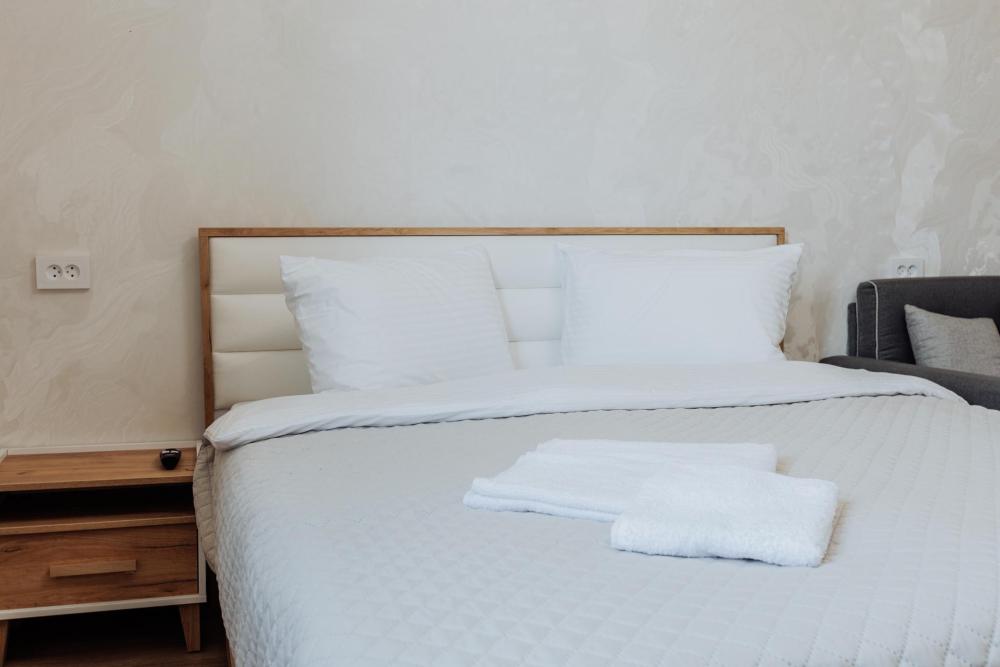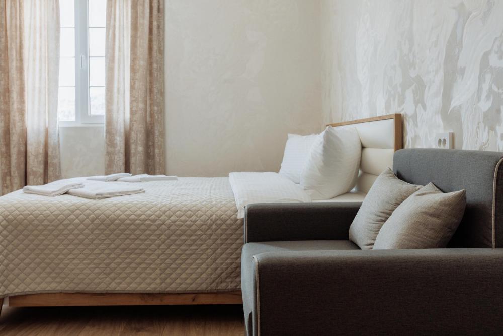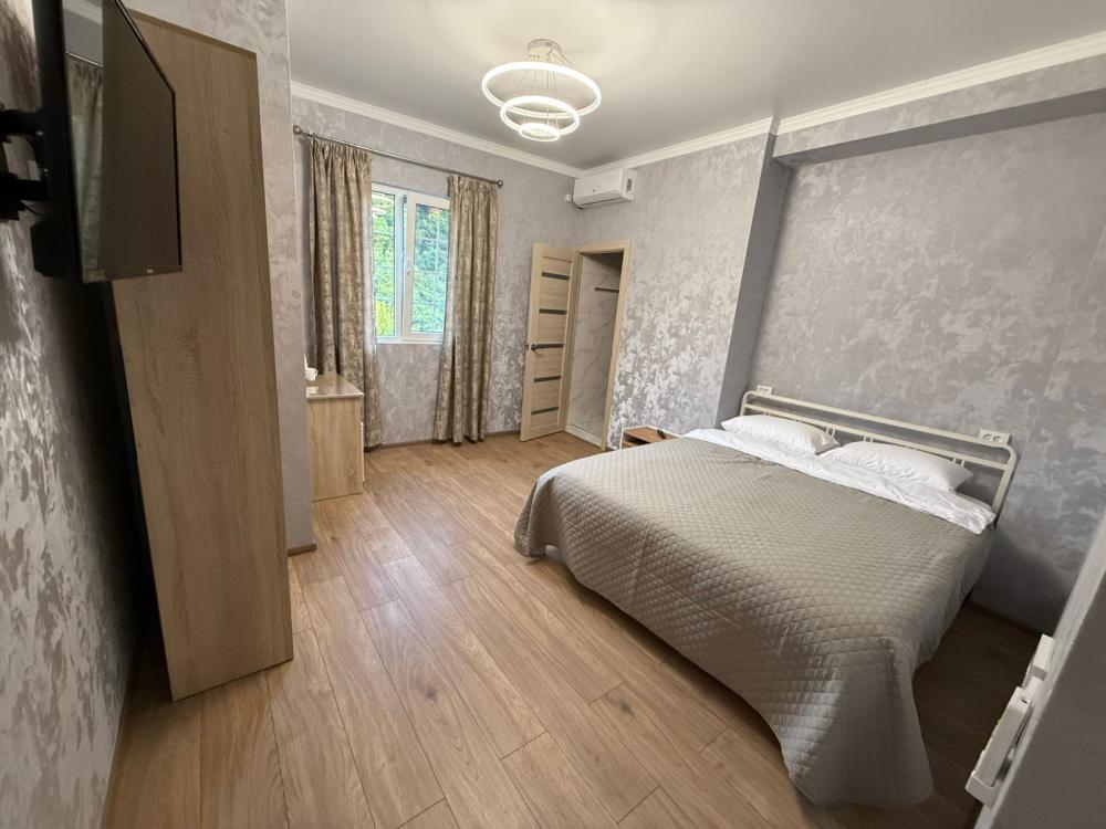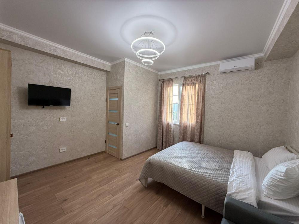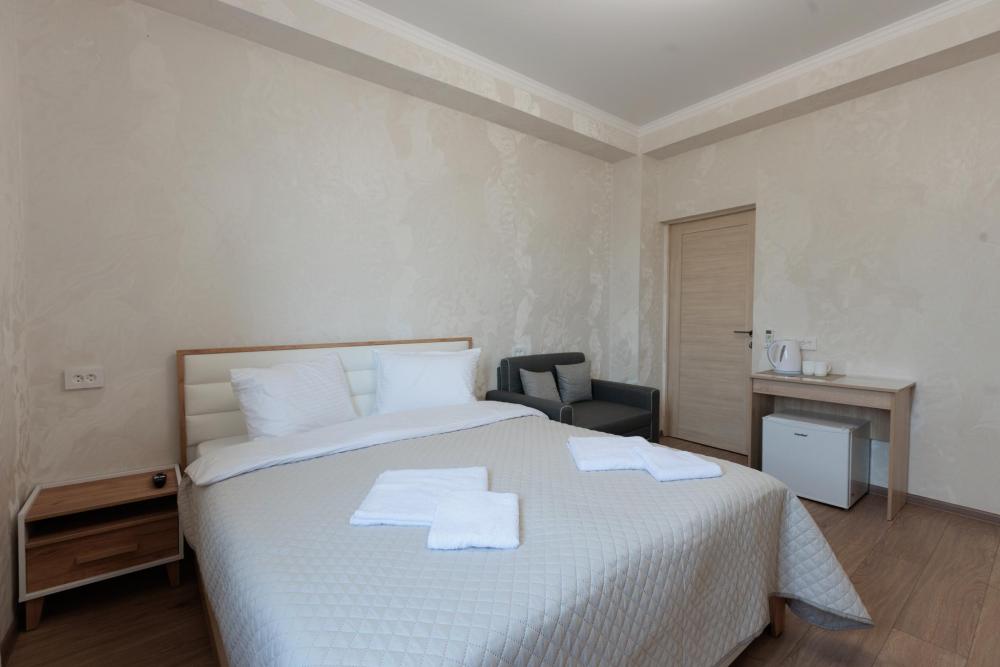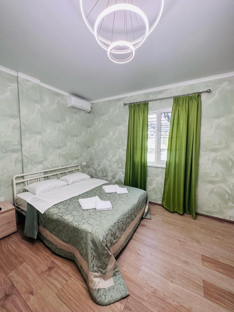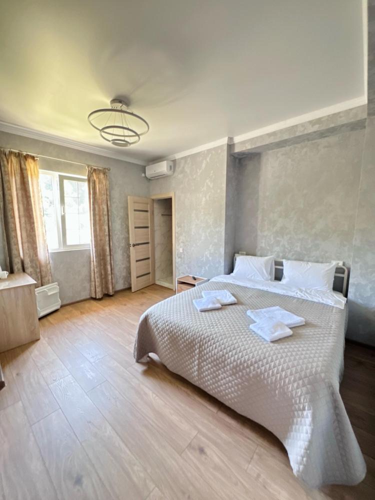 Стандарт с двуспальной кроватью Площадь номера составляет 18 кв.м. Шкаф для хранения вещей Бесплатный Wi-Fi. Кондиционер или система климат-контроля. Мини- холодильник. Электрический чайник и набор посуды. Ванная комната с душевой кабиной , туалетом и необходимыми туалетными принадлежностями. Фен для волос. Тапочки, банные принадлежности (щетка, зубная паста, жидкое мыло). Есть общий мангал, микроволновка, плита, кофеварка, мультиварка. Стирка, детская кроватка и игровой манеж - за доп. плату Объект находится под видеонаблюдением, подключена охранная система
