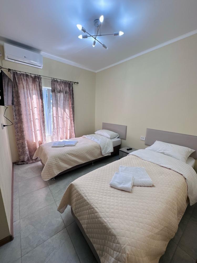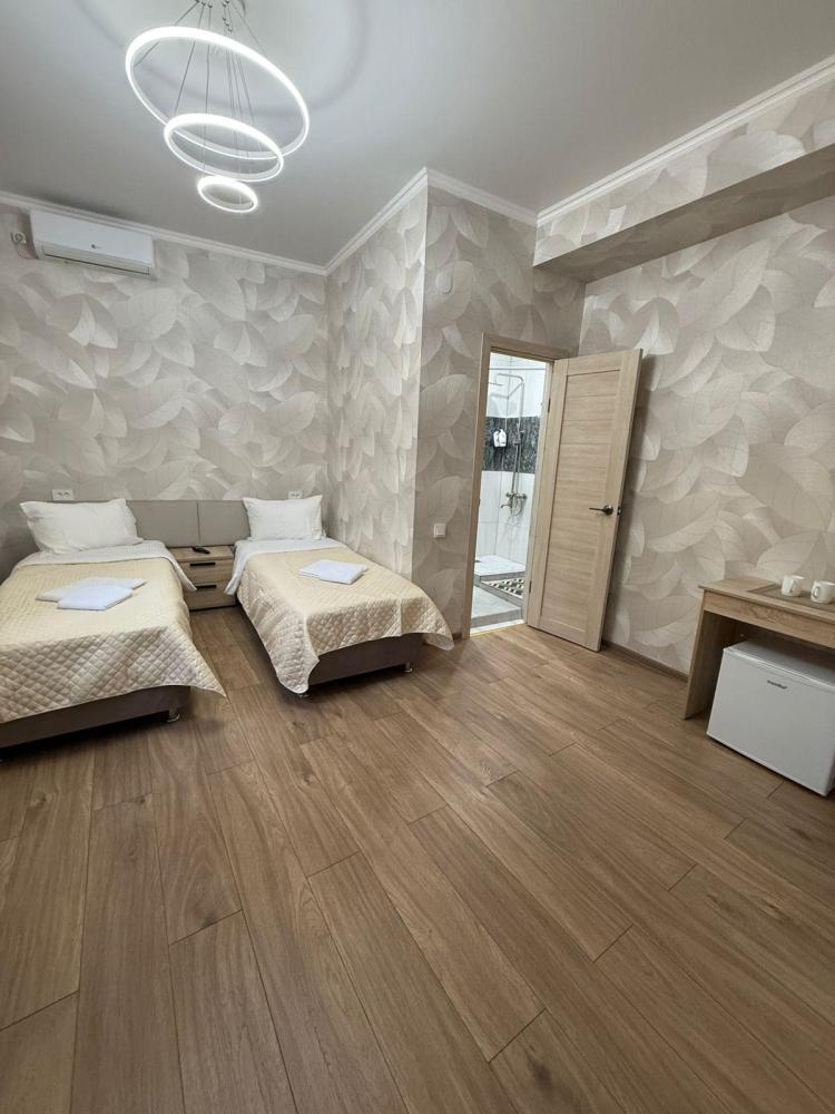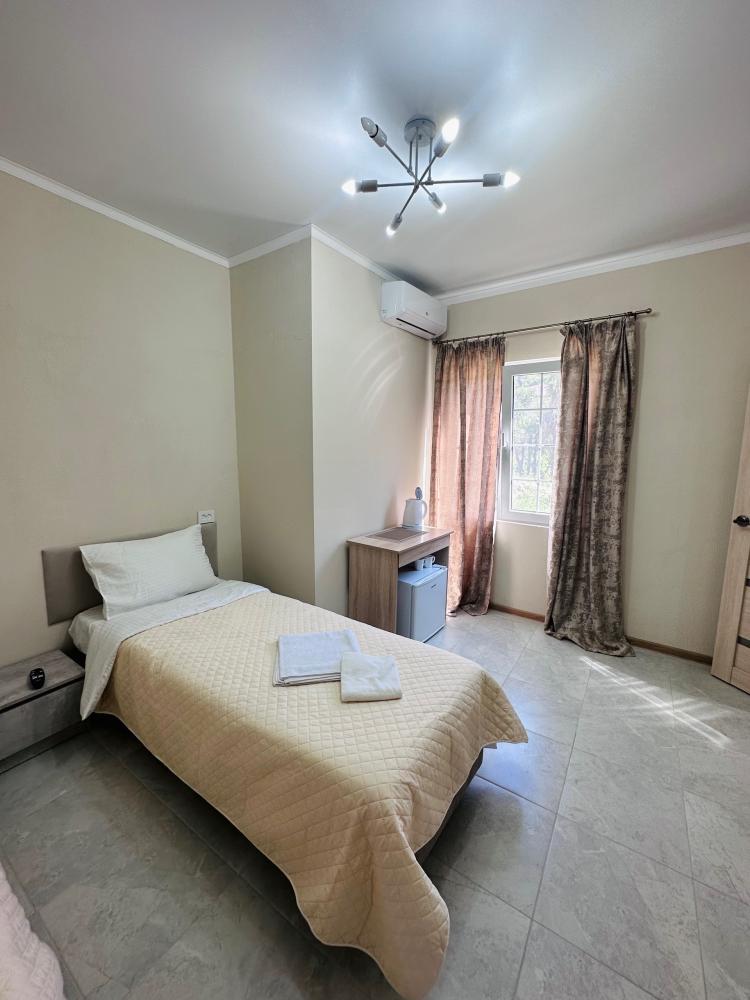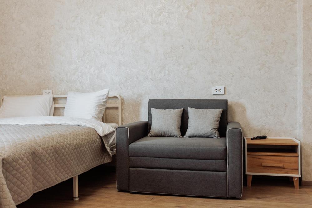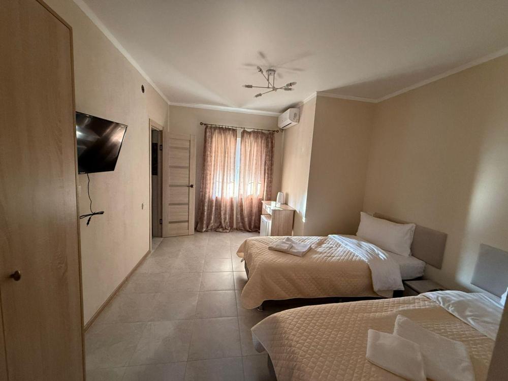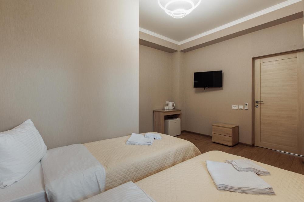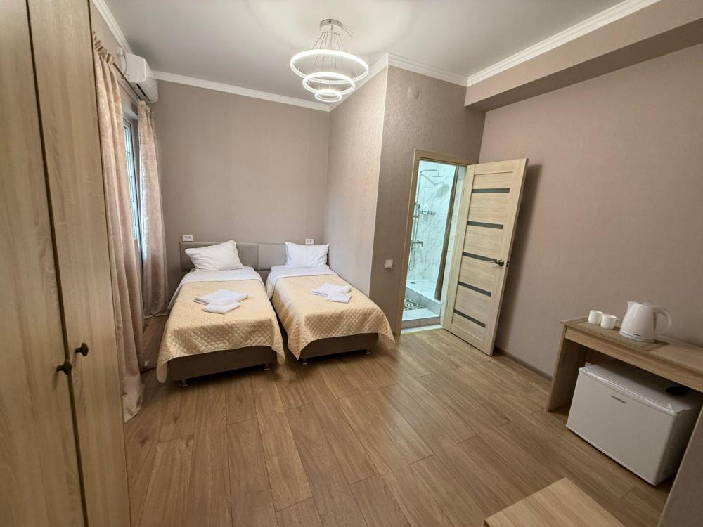 Стандарт с двумя односпальными кроватями Площадь номера составляет 18 кв.м. Шкаф для хранения вещей Бесплатный Wi-Fi. Кондиционер или система климат-контроля. Мини- холодильник. Электрический чайник и набор посуды. Ванная комната с душевой кабиной , туалетом и необходимыми туалетными принадлежностями. Фен для волос. Тапочки, банные принадлежности (щетка, зубная паста, жидкое мыло). Есть общий мангал, микроволновка, плита, кофеварка, мультиварка. Стирка, детская кроватка и игровой манеж - за доп. плату Объект находится под видеонаблюдением, подключена охранная система
