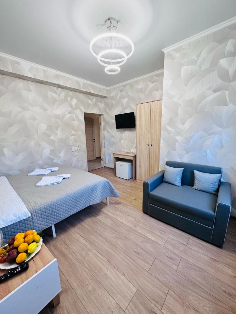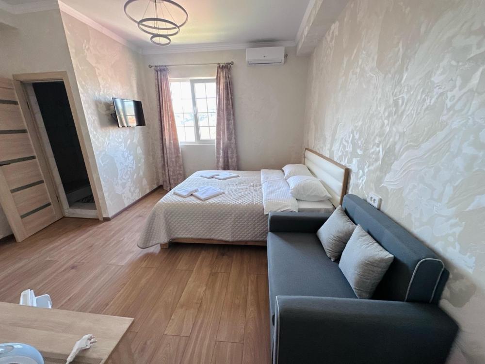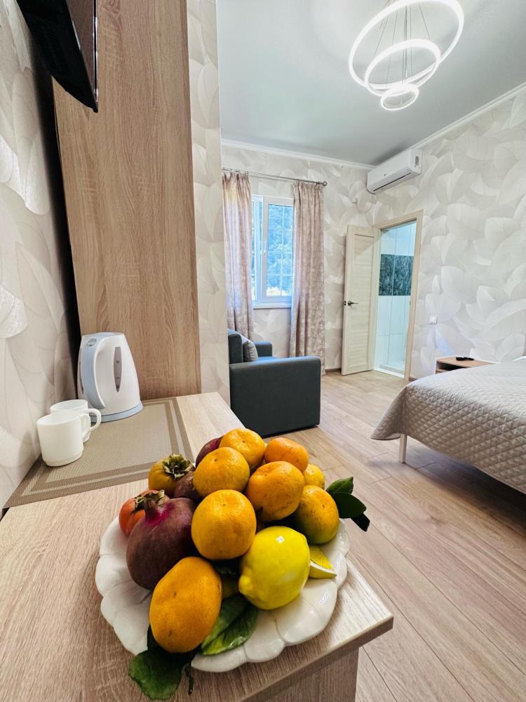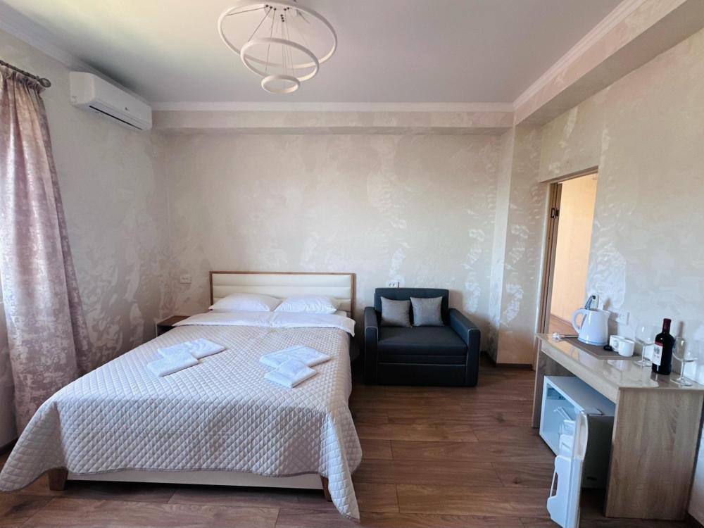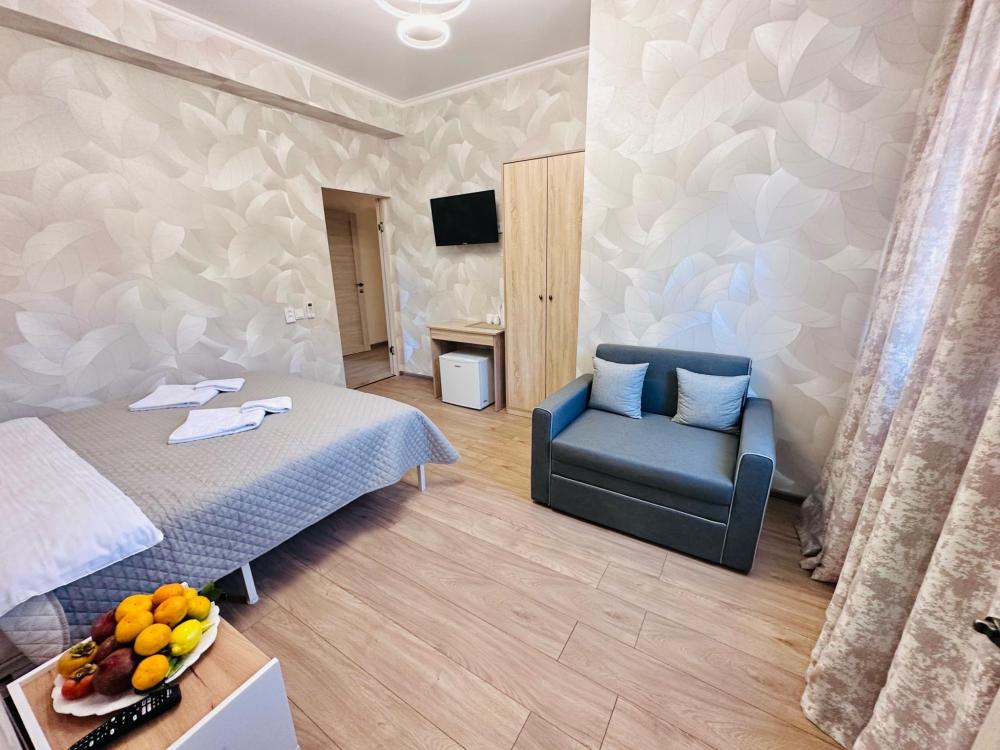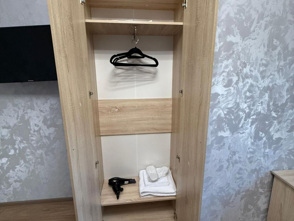 Двуспальная кровать + раскладной диванчик Площадь номера составляет 18 кв.м. Шкаф для хранения вещей Бесплатный Wi-Fi. Кондиционер или система климат-контроля. Мини- холодильник. Электрический чайник и набор посуды. Ванная комната с душевой кабиной , туалетом и необходимыми туалетными принадлежностями. Фен для волос. Тапочки, банные принадлежности (щетка, зубная паста, жидкое мыло). Есть общий мангал, микроволновка, плита, кофеварка, мультиварка. Стирка, детская кроватка и игровой манеж - за доп. плату Объект находится под видеонаблюдением, подключена охранная система