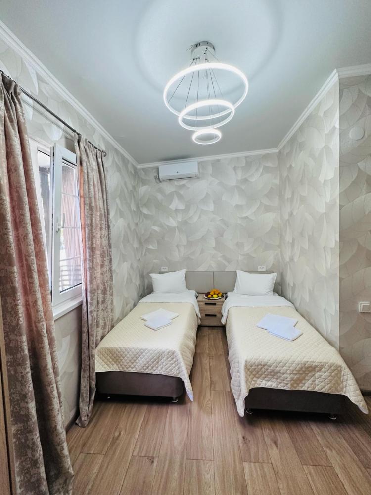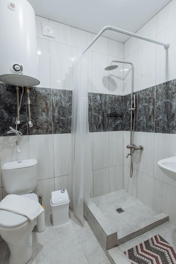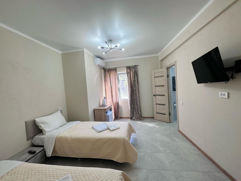 Семейный номер с 2 изолированными спальнями, в каждой спальне - душ и туалет, кондиционер, мини-холодильник, электрический чайник, телевизор и фен. Площадь номера составляет 40 кв.м Бесплатный wi-fi. Тапочки, банные принадлежности (щетка, зубная паста, жидкое мыло). Есть общий мангал, микроволновка, плита, кофеварка, мультиварка Стирка, детская кроватка и игровой манеж - за доп. плату