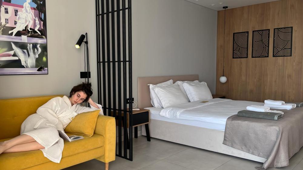 Современный комфортабельный номер для проживания максимум 4 гостей. Площадь номера - 42 м2.